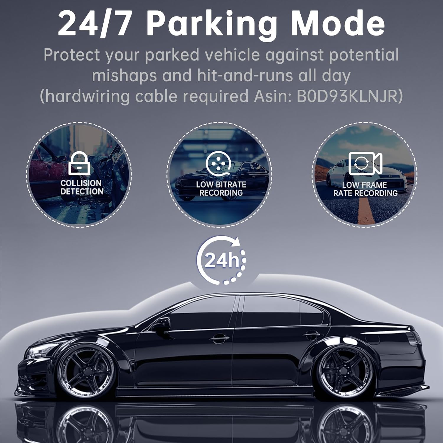 Capture every detail with advanced Super Night Vision and WDR technology, automatically adjusting exposure, contrast, and color balance for sharp images in all lighting conditions. Its 1.47" IPS display allows effortless review and playback, while 24H parking monitoring protects your vehicle when parked (requires optional hardwire kit).