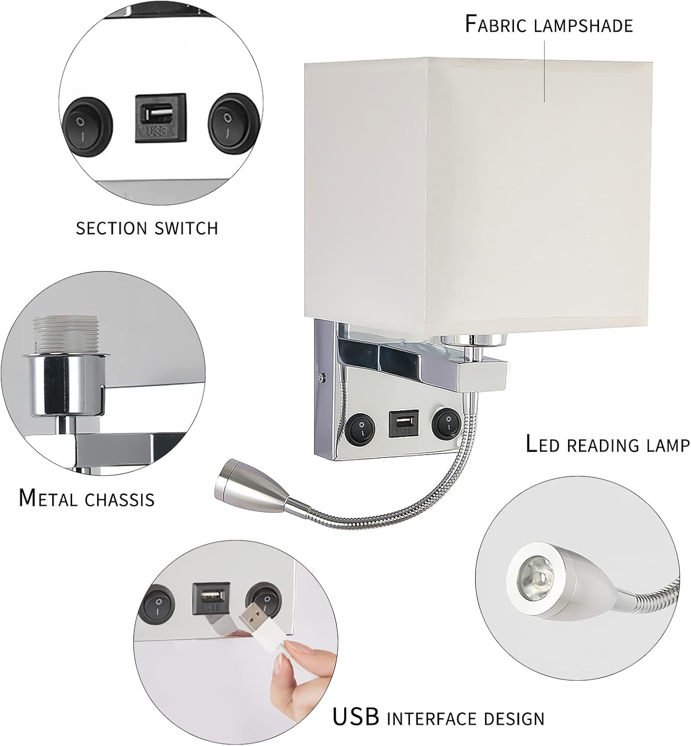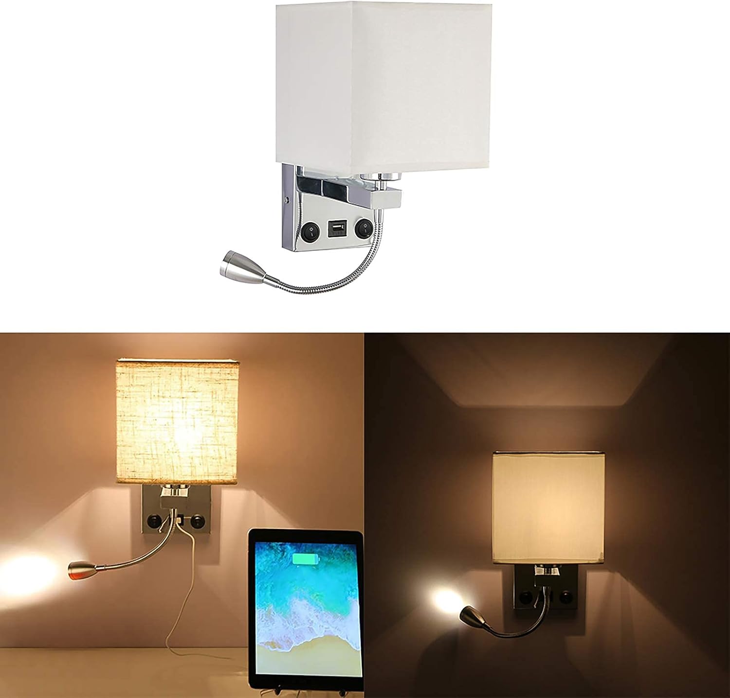 Our DEECOZY LED Bedside Reading Wall Lamp provides versatile lighting for bedrooms, living rooms, corridors, and study areas. Featuring a dual rocker switch design and a flexible gooseneck spotlight, this lamp allows you to adjust the direction of light for comfortable reading or focused illumination without disturbing others. The multifunctional lamp includes a USB port for convenient charging and is built with durable, corrosion-resistant metal and high-quality PVC fabric for longevity. With a 3W LED and long lifespan of up to 50,000 hours, this bedside wall lamp combines practicality, durability, and modern style for everyday use.