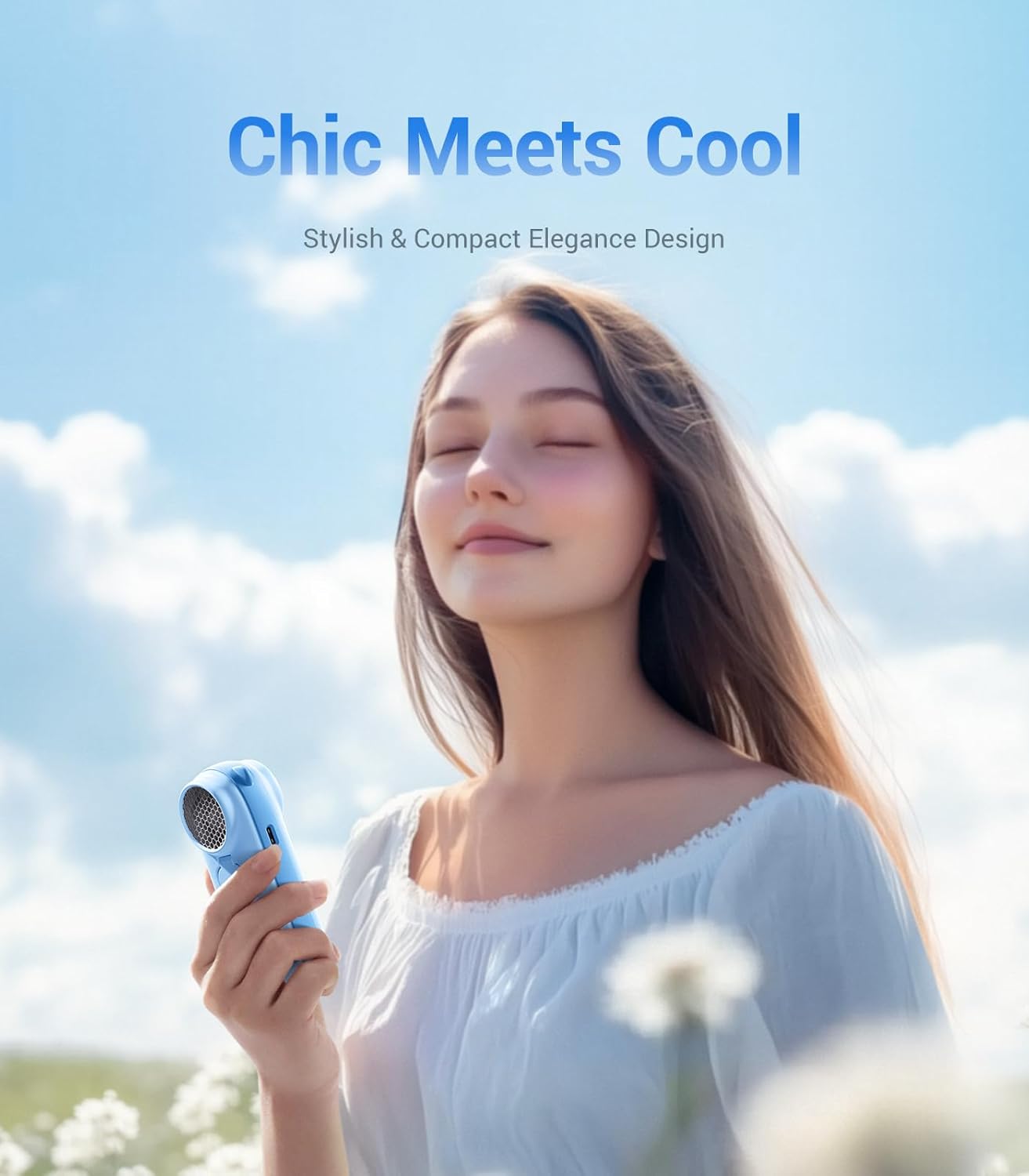 Our portable handheld turbo fan with 5 speeds, 4000mAh rechargeable battery, up to 16 hours runtime, turbo-charged motor, lightweight pocket-sized design, and durable ABS construction delivers consistent and refreshing cooling wherever you go. Compact yet stylish, it fits easily into bags or pockets, ideal for travel, summer outings, outdoor activities, makeup touch-ups, or staying cool on the move.
