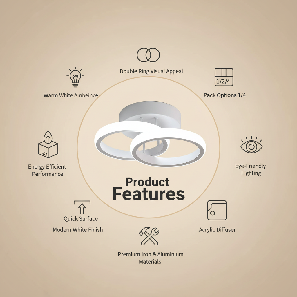 Double Ring Visual Appeal: Two circular LED rings add depth and modern character