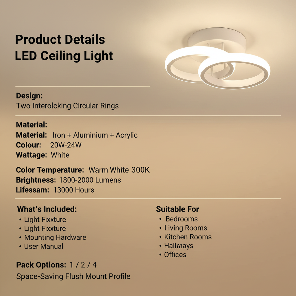 Crafted from durable iron and aluminium with an acrylic diffuser, this energy-efficient LED ceiling light provides uniform brightness without glare, helping protect your eyes while enhancing room ambience. Customers can choose from Pack of 1, Pack of 2, or Pack of 4 options, depending on space size and usage needs—making it easy to light a single room or maintain a consistent lighting style throughout the home.