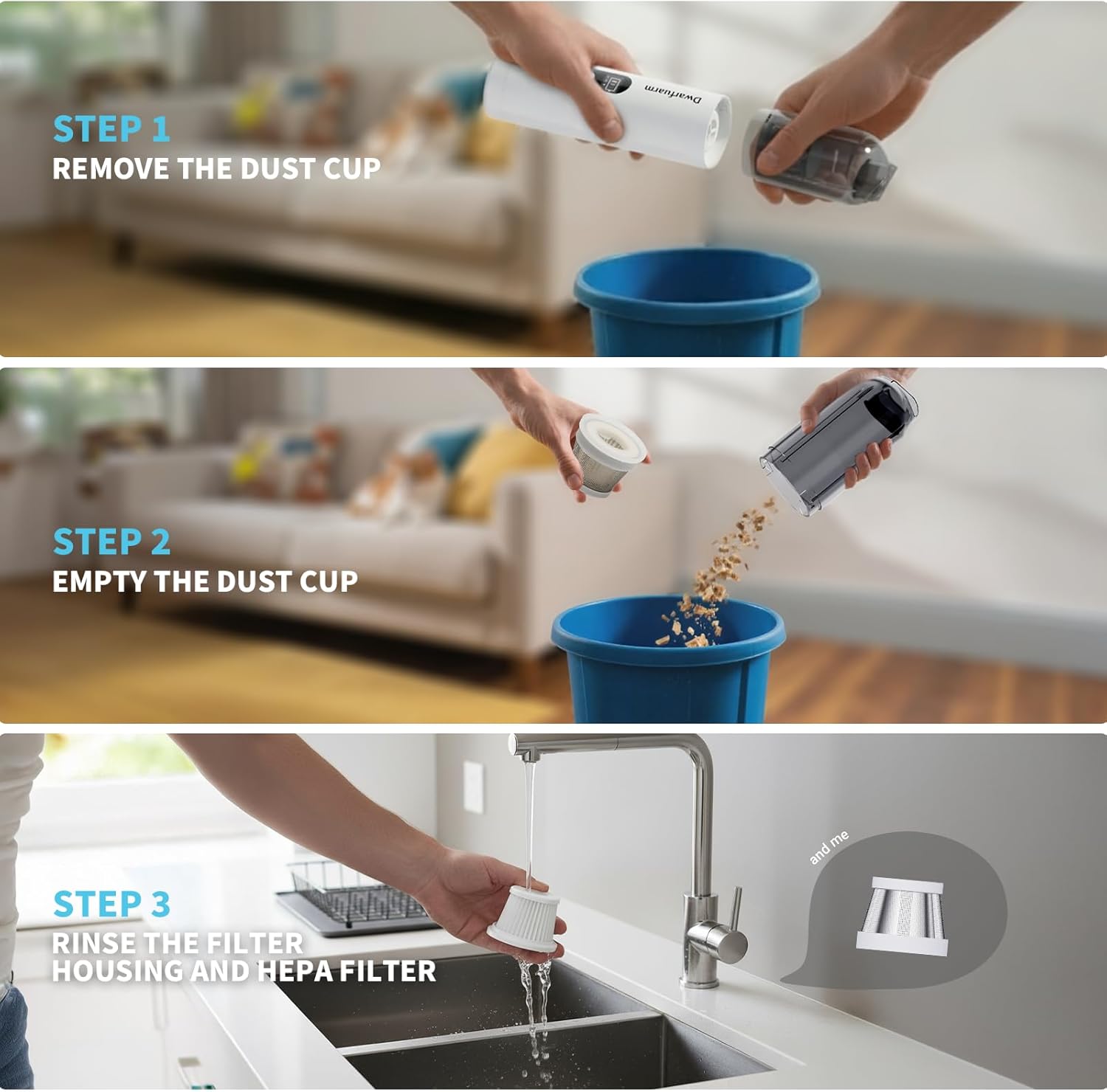 Our Dwarfuarm 5-in-1 Portable Mini Cordless Handheld Vacuum delivers 16000Pa ultra-strong suction power with a high-speed brushless motor for deep, efficient cleaning. Designed for versatility, it functions as a vacuum, blower, and inflator, making it ideal for cars, home surfaces, keyboards, and outdoor use. With dual rechargeable batteries providing up to 60 minutes of runtime, this lightweight and compact cleaner ensures powerful, portable performance wherever you need it.