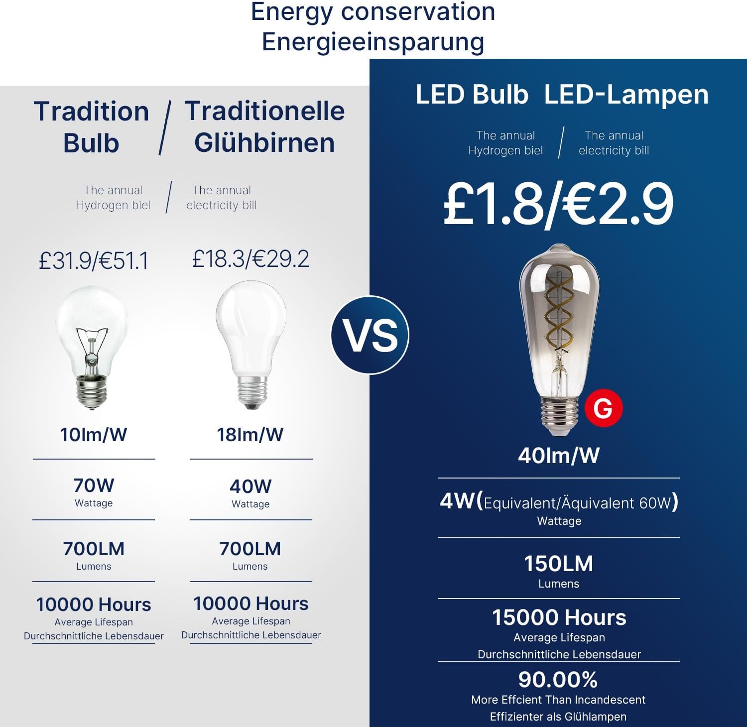 E27 LED Vintage Bulbs ST58 4W 40W Equivalent Smoke Grey Glass 5000K Pack of 4