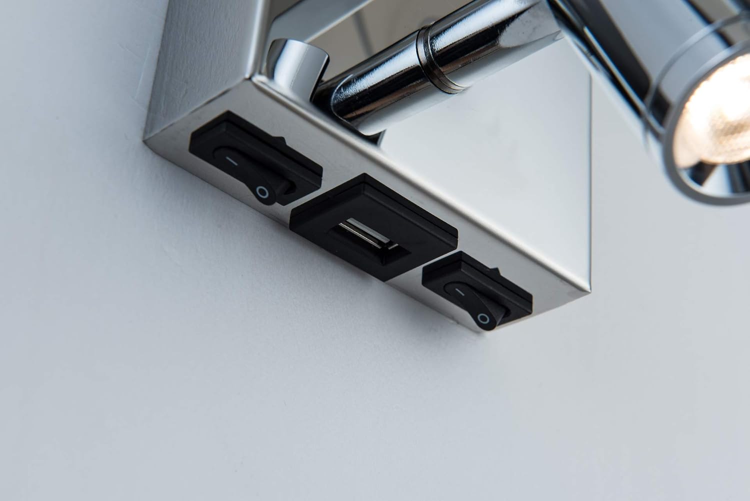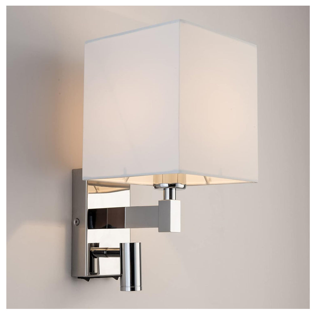 Our E27 wall light with adjustable LED reading light is designed to provide practical bedside illumination with added convenience for modern living spaces. Finished in polished chrome and paired with a square white fabric shade, this wall-mounted sconce combines ambient lighting with a focused 3W adjustable LED reading light, making it ideal for bedrooms, hotels, and guest rooms. Integrated USB and USB-C charging ports allow easy device charging, while two independent on/off switches ensure simple control of both the main light and the reading lamp.