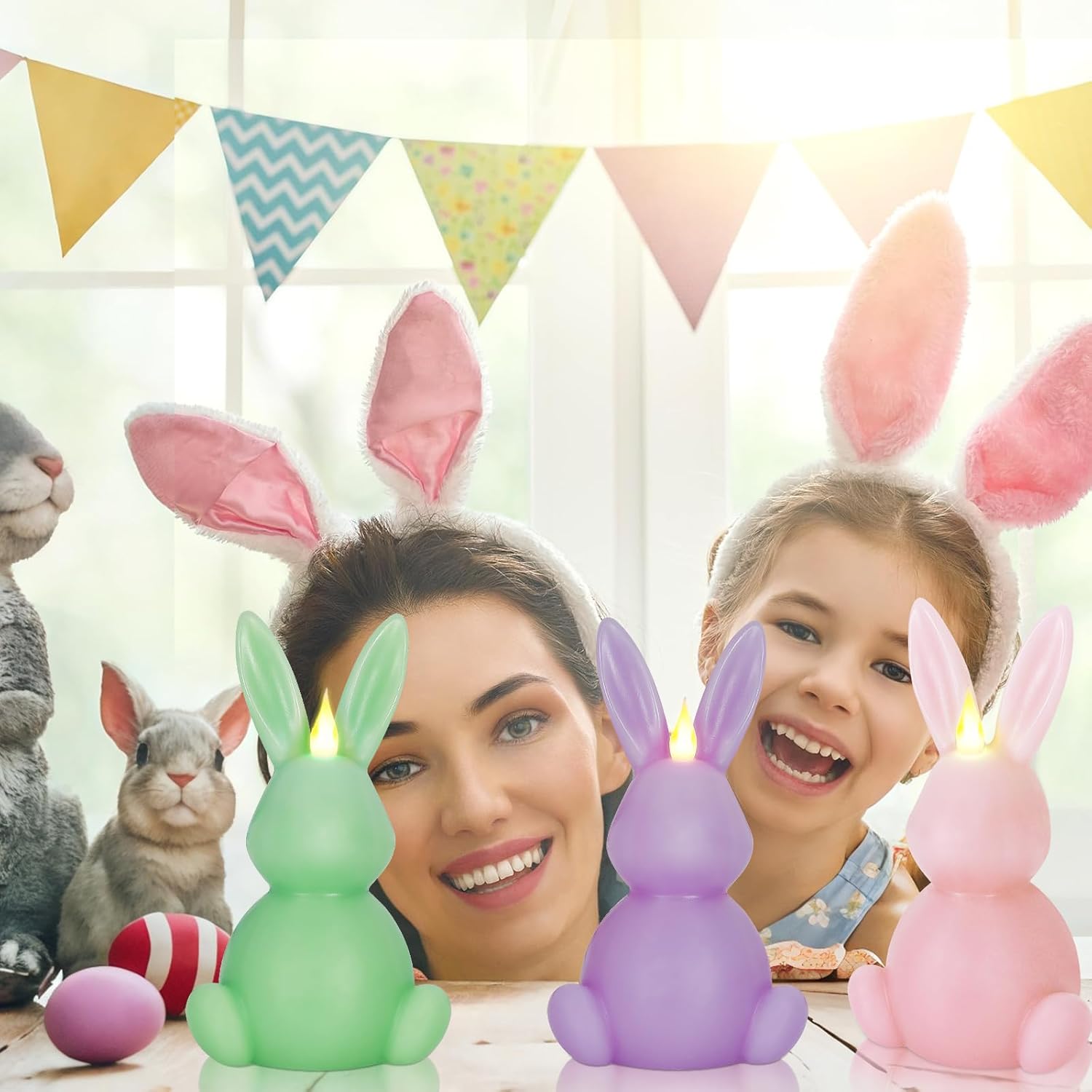 Celebrate the charm of spring with this set of three bunny-shaped flameless LED candles, designed to bring warmth and festive elegance to your home décor. Crafted from real wax with carved detailing, these decorative candles offer the authentic look of traditional candles while providing a safe, flameless lighting experience.
