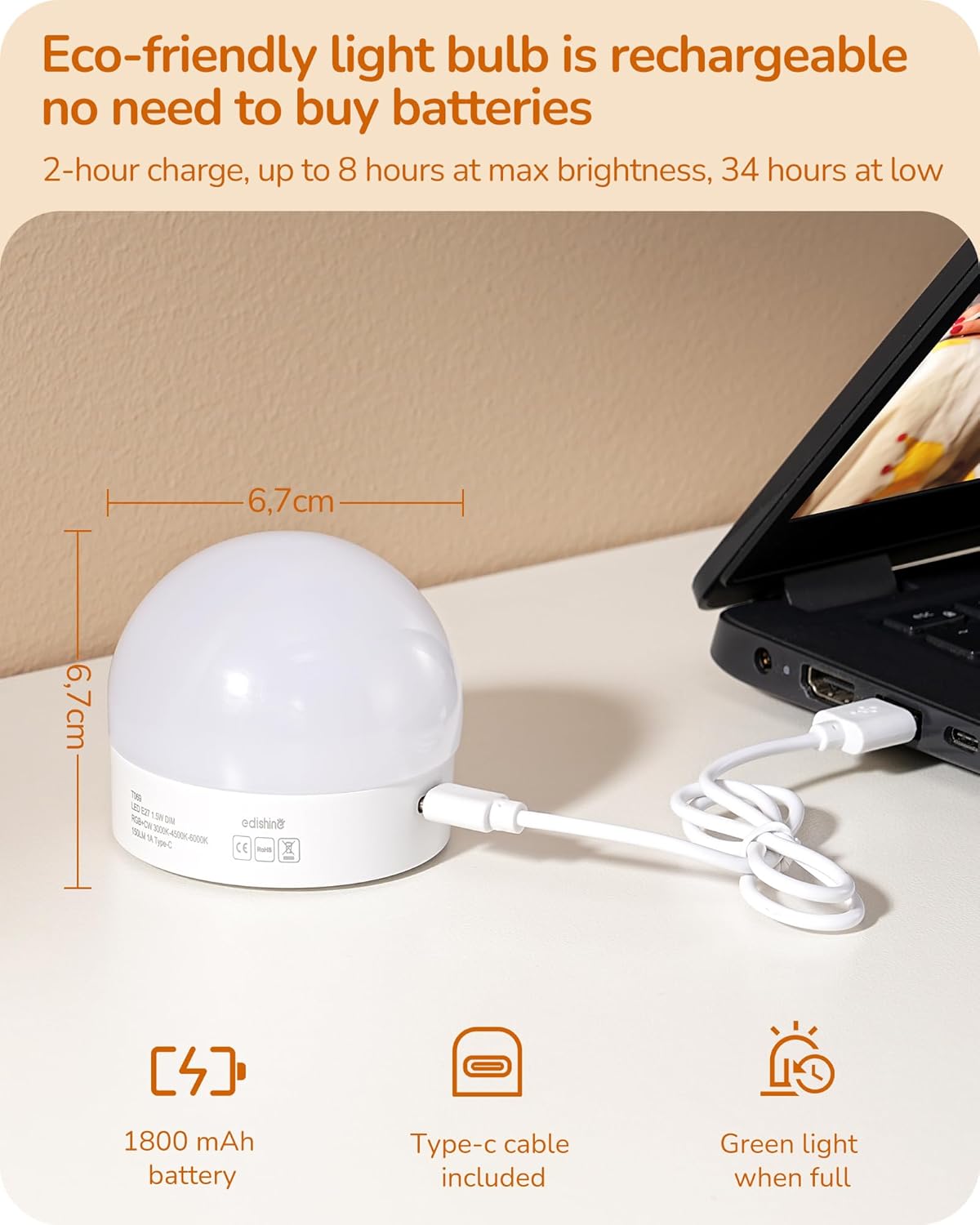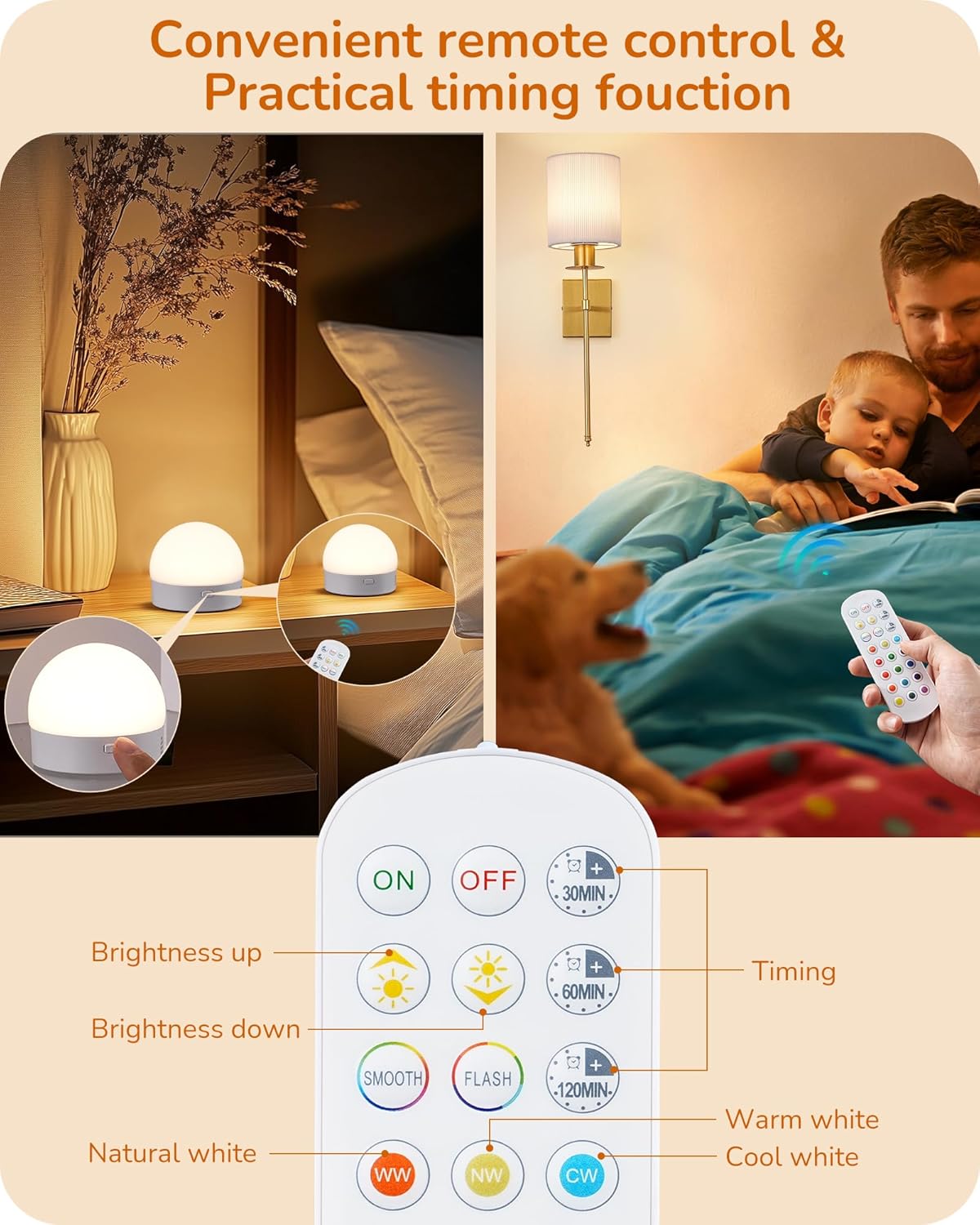Our EDISHINE USB rechargeable wall light set offers a modern and convenient solution for indoor lighting, featuring wireless battery operation and adjustable color settings. Each light supports three color temperatures (3000K, 4500K, 6500K) and 12 RGB color effects, controllable via the included remote. The dimmable LED bulbs provide 20%-100% brightness adjustment, ensuring gentle nighttime illumination or full brightness for everyday use. Equipped with a USB charging port, the lights fully charge in 3-4 hours and provide 8-34 hours of usage depending on brightness. Additional features include a 30/60/120-minute timer function and effortless three-step installation, making this two-piece set ideal for bars, kitchens, lofts, or any home space requiring flexible, energy-efficient lighting.
