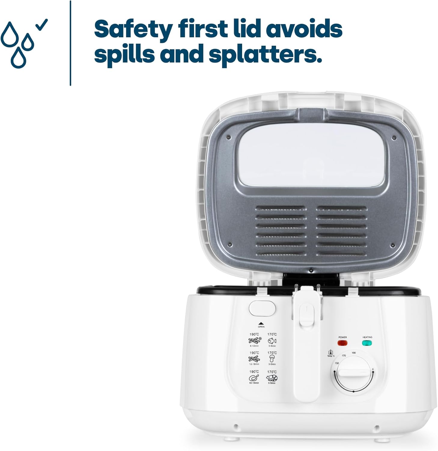 Safer than traditional hob frying with enclosed lid design