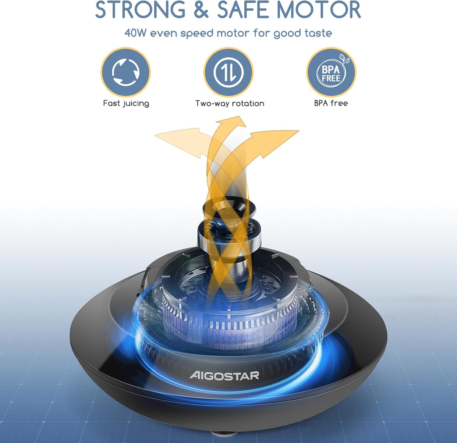 The two-way rotation system ensures maximum juice extraction with minimal pulp, while the built-in filter separates pulp for a smoother taste. Powered by a 40W quiet yet efficient motor, it outperforms manual juicers, delivering fresh juice with less effort and noise.