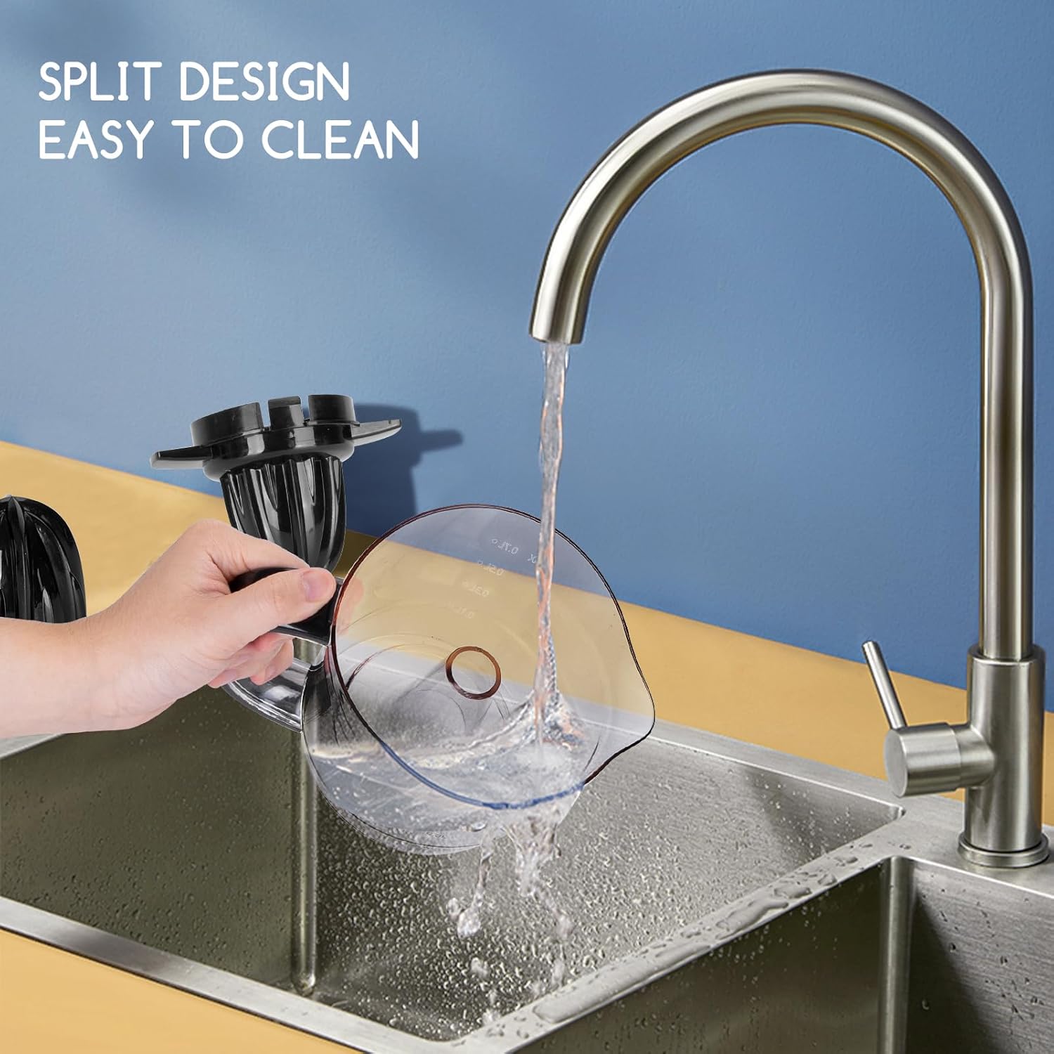 Made from BPA-free food-grade materials, the citrus juicer retains 100% natural vitamins, enzymes, and nutrients, offering a healthier juicing experience for the whole family. The detachable design allows easy assembly and cleaning — all removable parts are dishwasher-safe, and a protective dust cover keeps the juicer clean between uses.