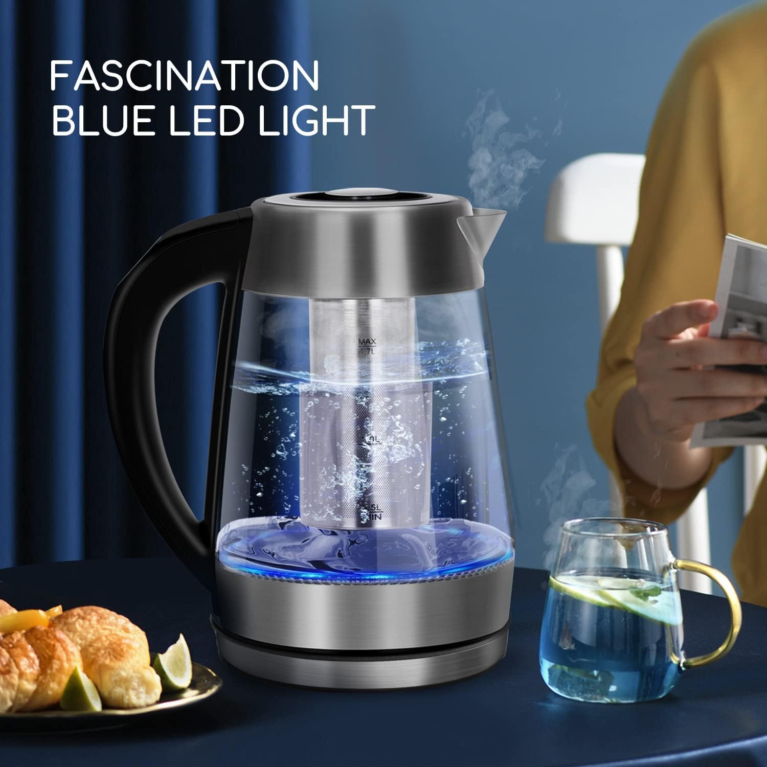 Elevate your tea and coffee experience with the Aigostar CRIS 30OSX Electric Glass Kettle, designed for modern kitchens and tea lovers. This premium kettle features a 1.7L capacity, 2200W fast boil system, and 5 preset temperature controls, ensuring you enjoy the perfect flavour from delicate teas to robust black teas and coffee. The built-in detachable tea infuser allows you to brew loose leaf tea directly in the kettle, while the keep-warm function maintains water at your desired temperature for up to 2 hours.