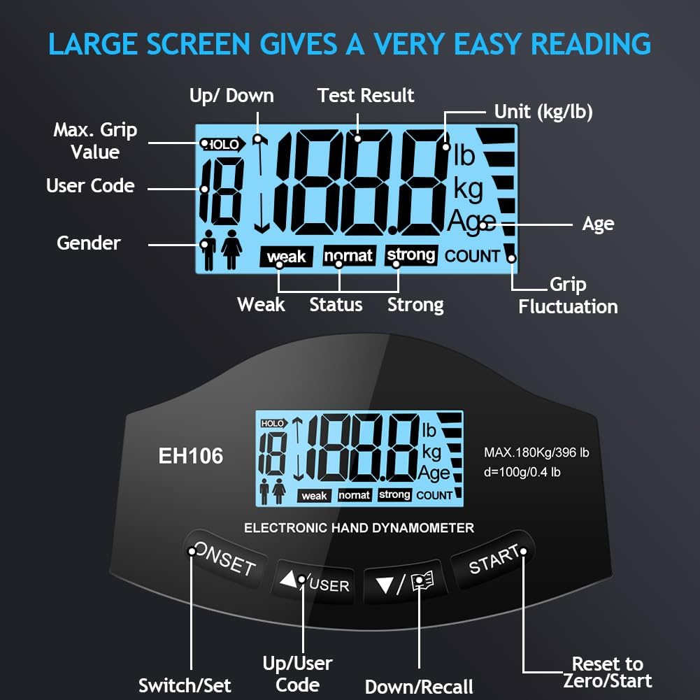 Electronic Hand Dynamometer Grip Strength Trainer – Digital Measurement Meter with LCD Display, USB & Battery Powered