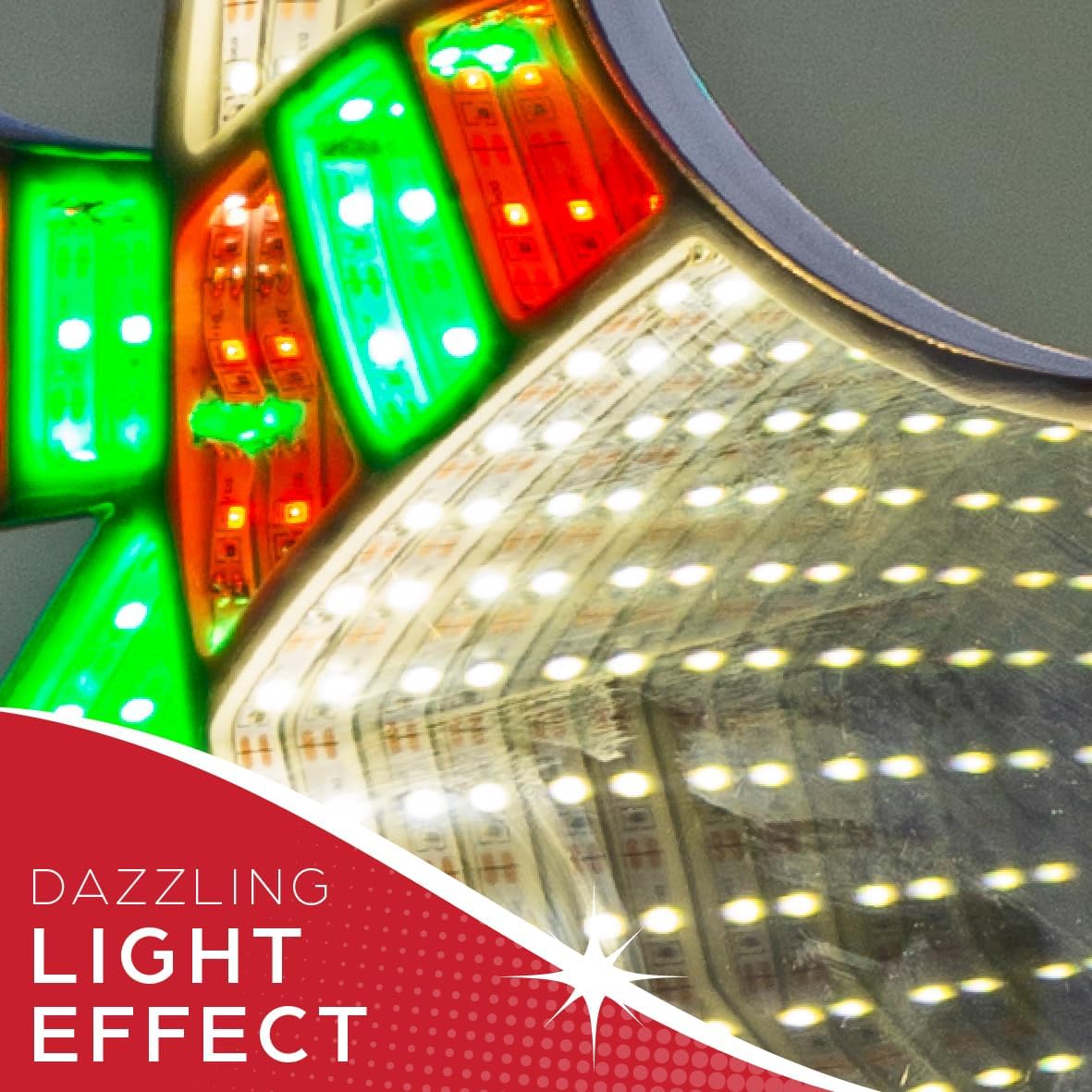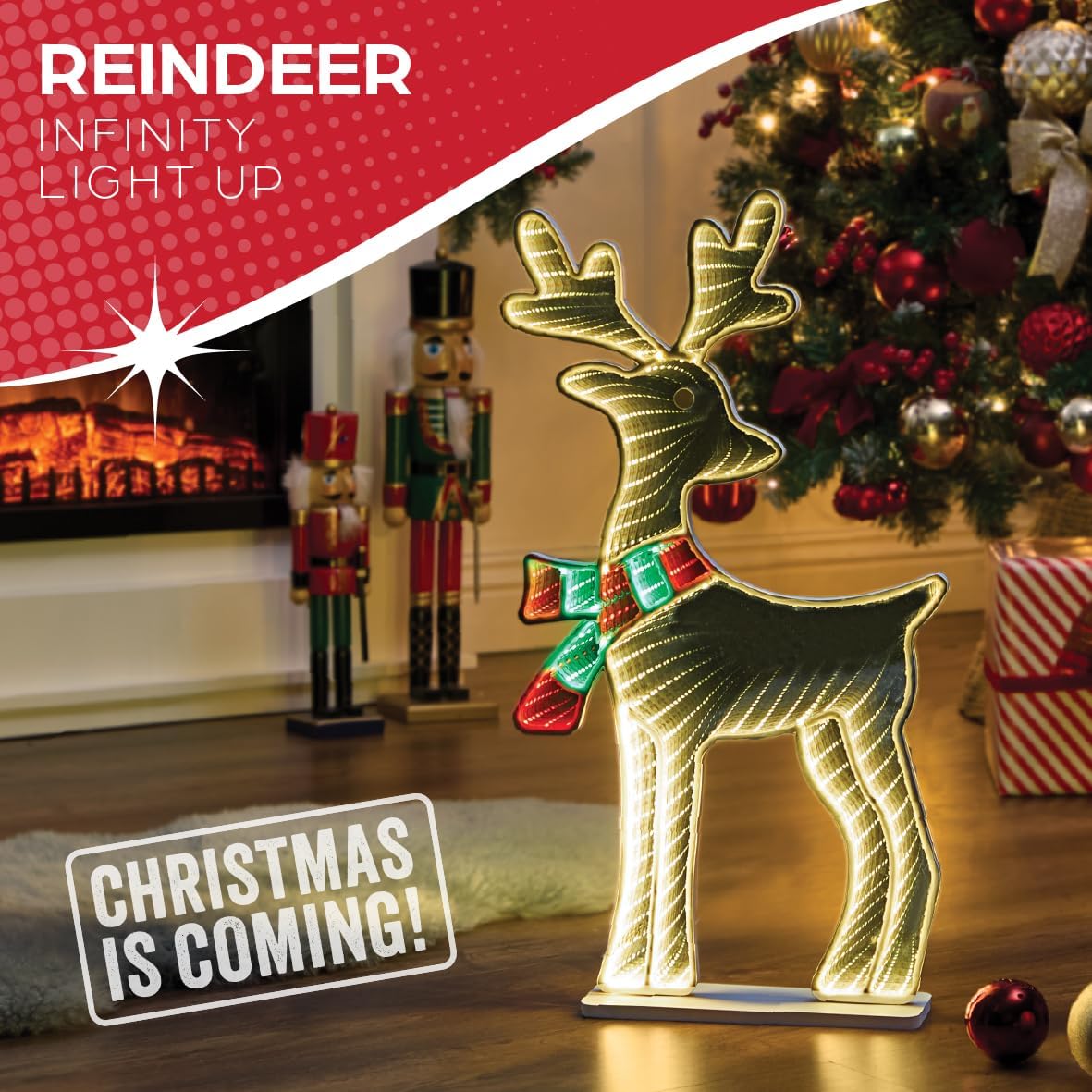 Our Elf Infinity Light is a charming festive decoration designed to add magic to your home this Christmas. Featuring 250 double-sided LED lights arranged in a mirror infinity effect, this light creates a dazzling display that appears to repeat endlessly. The multi-coloured LEDs include warm white, red, green, and cool white to highlight the elf’s traditional Christmas outfit, producing a vibrant and playful effect. Its freestanding design with a built-in rectangular base ensures stability on floors, windowsills, or shelves. With a 5-metre lead wire, placement is flexible, and its energy-efficient LEDs provide long-lasting holiday cheer. Perfect for indoor use, this elf Christmas light combines festive charm, safety, and ease of use in one delightful design.