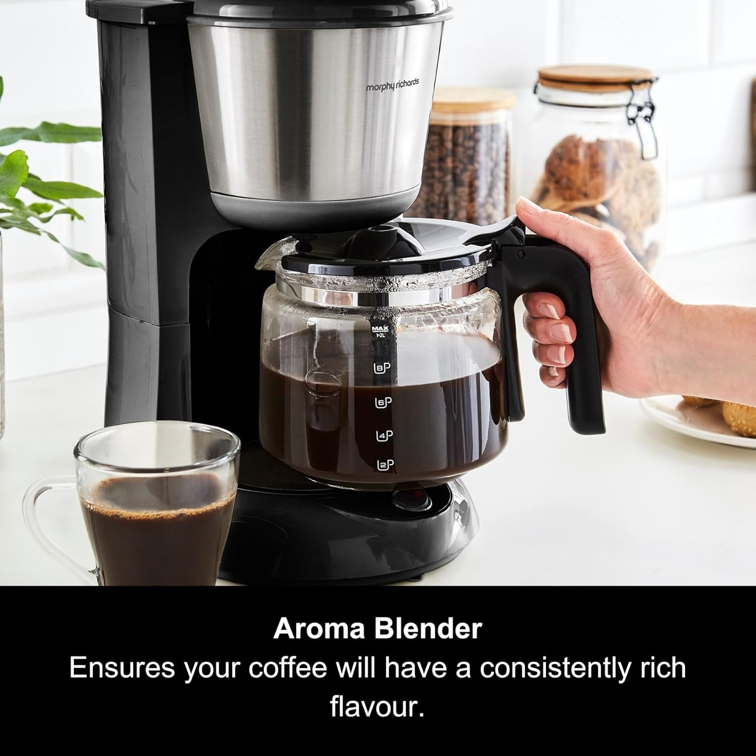 Brew café-quality coffee at home with the Equip Filter Coffee Machine — a perfect blend of innovation, convenience, and style. Designed for modern coffee lovers, this 1.2L drip coffee maker delivers up to 10 cups of rich, aromatic coffee in minutes. Featuring Pour Over Technology and an Aroma Blender, it ensures even flavour extraction for a smoother, full-bodied taste. The Keep Warm Function maintains optimal temperature for up to 40 minutes, while the Reusable Permanent Filter saves you money and reduces waste. With its Anti-Drip Device, Illuminated On/Off Switch, and Easy View Water Level Indicator, this sleek black and brushed steel coffee maker offers effortless brewing and professional performance for every cup.