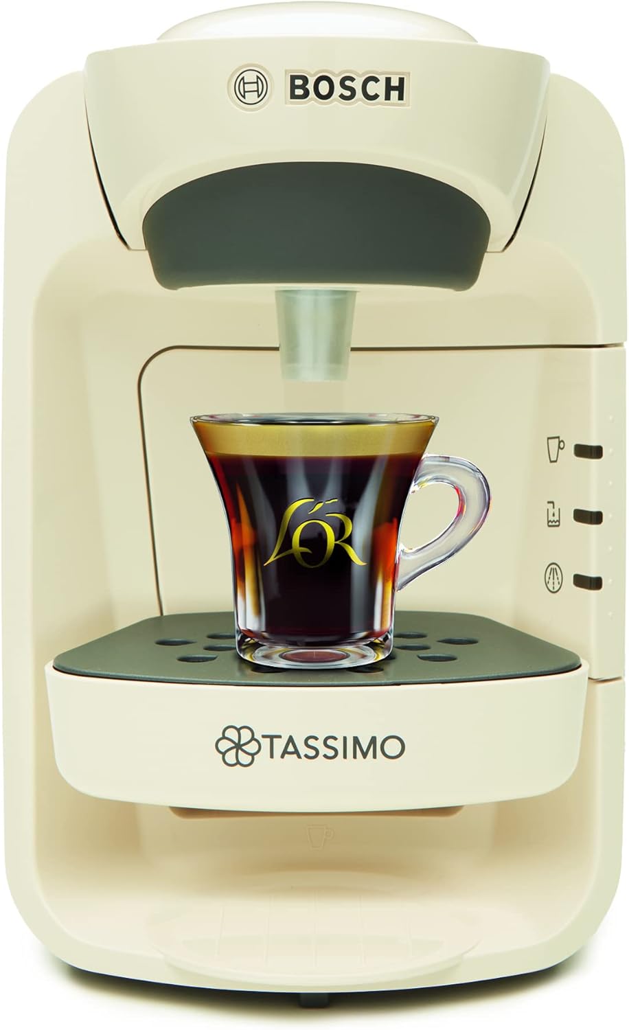 Enjoy café-quality drinks at home with the Tassimo by Bosch Suny 'Special Edition' TAS3107GB Tassimo Coffee Machine. Designed for simplicity and convenience, this compact espresso machine features one-button operation and Intellibrew barcode technology, which automatically reads your chosen pod and brews the perfect coffee, cappuccino, latte, or hot chocolate every time.