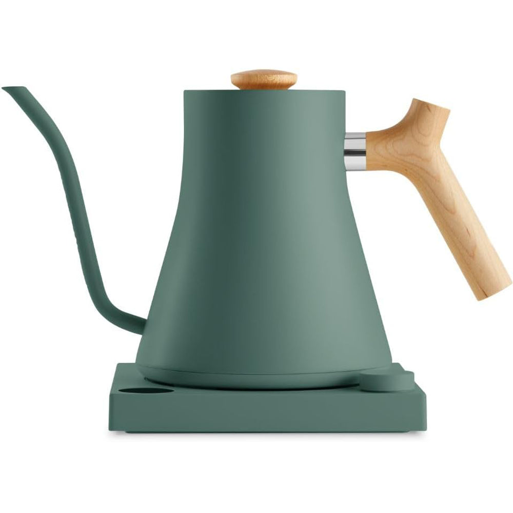 Our Fellow Stagg EKG Electric Gooseneck Kettle is a beautifully crafted, precision-engineered kettle designed for coffee and tea lovers who value control and style. With a 0.9L stainless steel body, it features a sleek gooseneck spout for an accurate and steady pour, perfect for pour-over brewing. The quick heating system ensures water reaches your desired temperature efficiently, while the maple wood handle adds a warm, natural touch to the modern Smoke Green finish. Designed for both performance and elegance, it’s ideal for home baristas and tea enthusiasts who want to elevate their brewing experience.