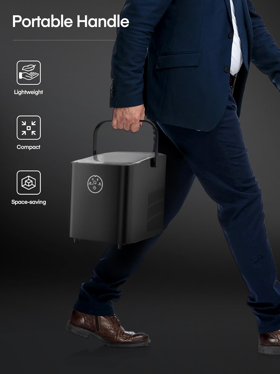 Built with an intuitive control panel and a self-cleaning function, this ice maker ensures easy operation and effortless maintenance. Its see-through window lets you monitor ice production in real time, while the foam insulation keeps your ice colder for longer. Featuring a lightweight body and sturdy handle, it’s perfect for home kitchens, parties, RV trips, or outdoor events. This energy-efficient and food-grade design delivers pure, fresh ice every time.