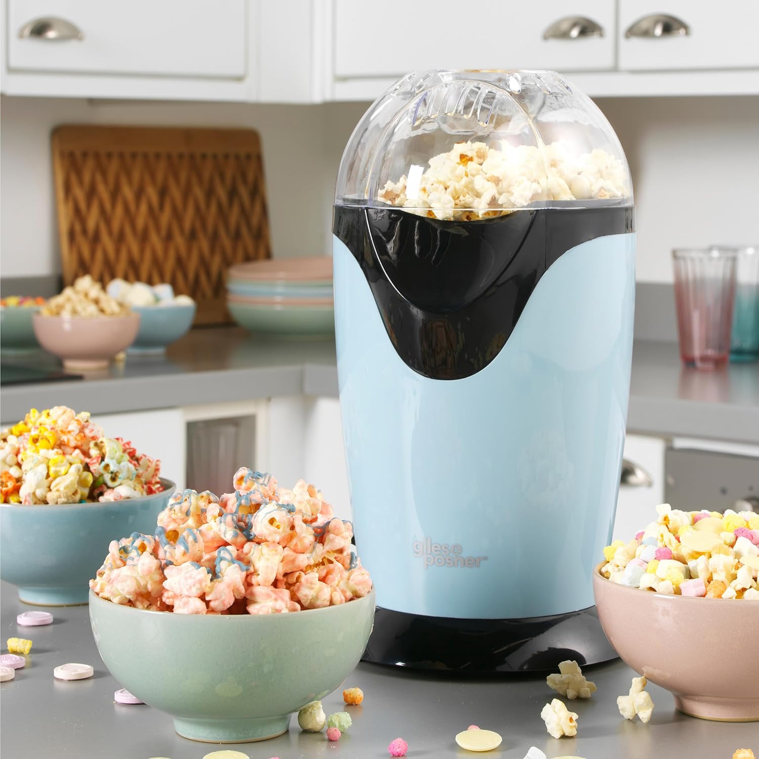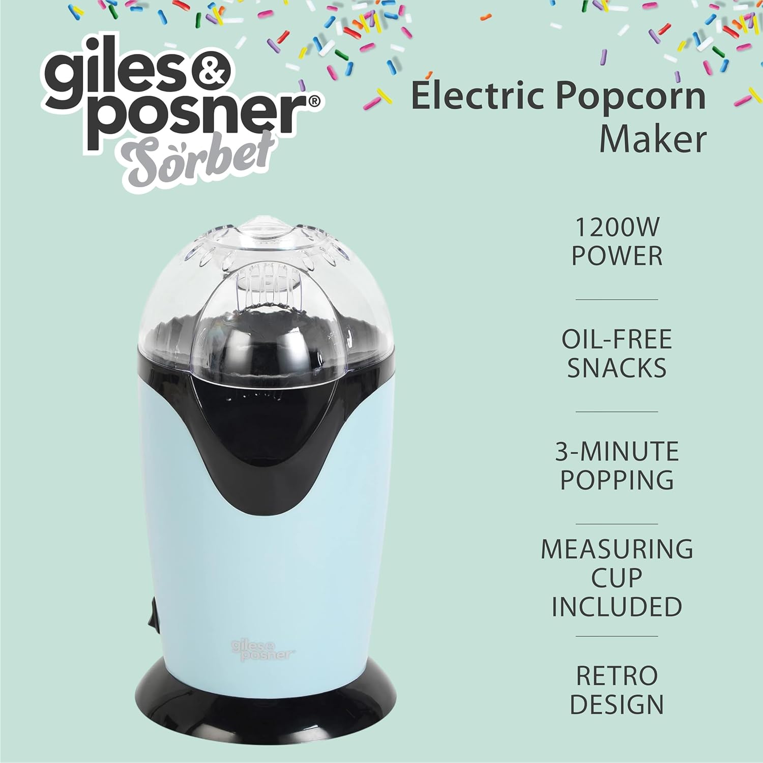 Our Giles & Posner EK0493GSBL Electric Popcorn Maker is designed to bring the fun of the cinema right into your home. Using advanced hot air circulation technology, it pops your kernels quickly and evenly—producing a large bowl of fat-free, healthy snacks in under three minutes. With its charming pastel blue design, this popcorn machine adds a stylish retro touch to any kitchen, party, or movie night. The non-slip base ensures safe operation, while the one-touch function makes it incredibly easy to use. Perfect for families, parties, and home cinemas, this lightweight and compact popcorn maker provides delicious results every time without the need for oil.