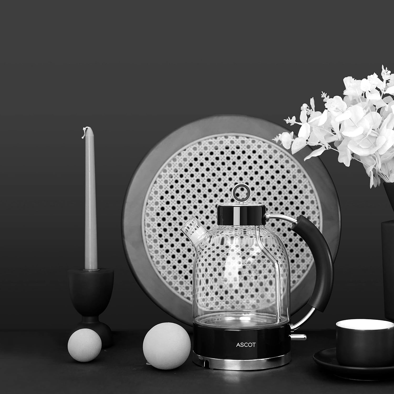 Our 1.5L Glass Electric Kettle is a sleek, modern appliance designed for fast and efficient boiling. Crafted from premium borosilicate glass, it offers durability and a crystal-clear view of the boiling process. With its rapid heating technology, auto shut-off, and boil-dry protection, it ensures a safe and effortless tea or coffee experience. The elegant black base makes it a stylish addition to any kitchen, making it a perfect gift for men, women, or families.