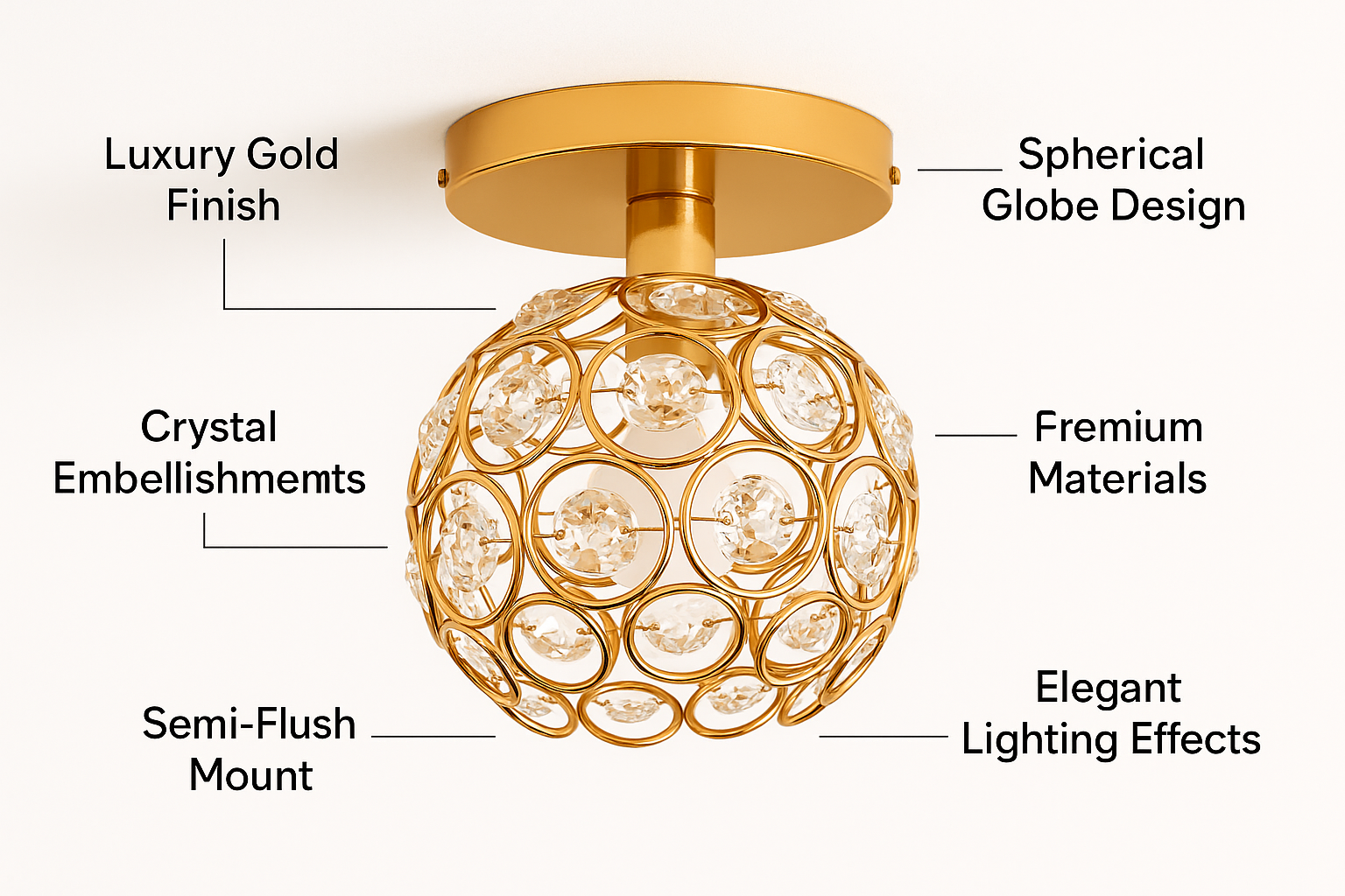Add a touch of sophistication to your home with this Modern Light Ceiling Fixture, featuring a sleek round metal shade with a luxurious golden finish. Perfect for hallways, porches, entryways, and hearth spaces, this semi-flush mount ceiling lamp combines a vintage aesthetic with modern elegance. Ideal for UK homes, it provides warm and inviting illumination while enhancing any interior decor.