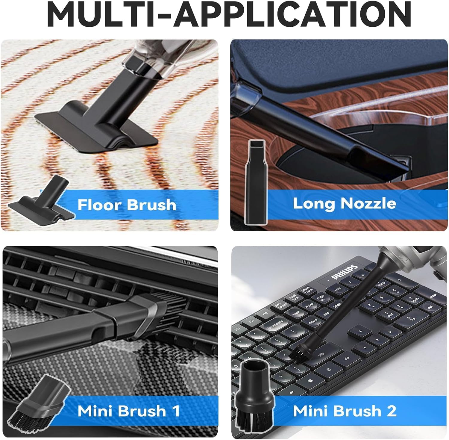 This lightweight and rechargeable vacuum comes with 8 multifunctional nozzles for vacuuming, blowing, inflating, and suctioning, allowing you to clean even the tightest corners and surfaces. The HEPA filter efficiently captures fine dust and allergens, providing a cleaner and healthier environment. Its silent operation under 70dB ensures convenient cleaning without disturbing your surroundings. With quick charging in just 4 hours and 30 minutes of continuous runtime, this cordless mini vacuum is perfect for everyday cleaning tasks.