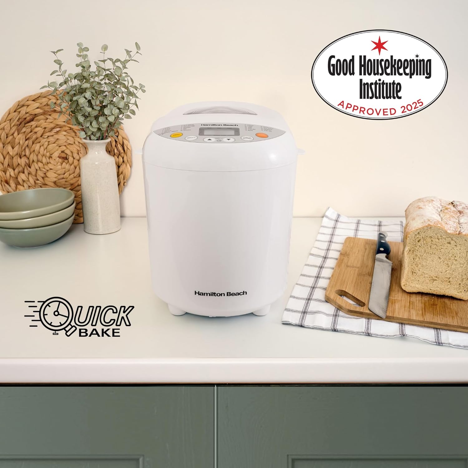 Our Hamilton Beach Bread Maker makes baking fresh, homemade bread simple and effortless. Designed for modern kitchens, this powerful machine offers 19 versatile baking programmes, including Gluten-Free, Whole Wheat, Jam, and Pizza Dough settings — perfect for everyday baking or special occasions.