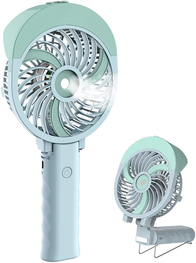 Our portable handheld misting fan features a 3-speed brushless motor with a 55ml water tank for instant cooling, foldable design, and a metal clip for versatile placement. Battery-operated with a 2000mAh rechargeable battery, it delivers up to 9 hours of use and is ideal for travel, camping, outdoor activities, or personal cooling at home or office.