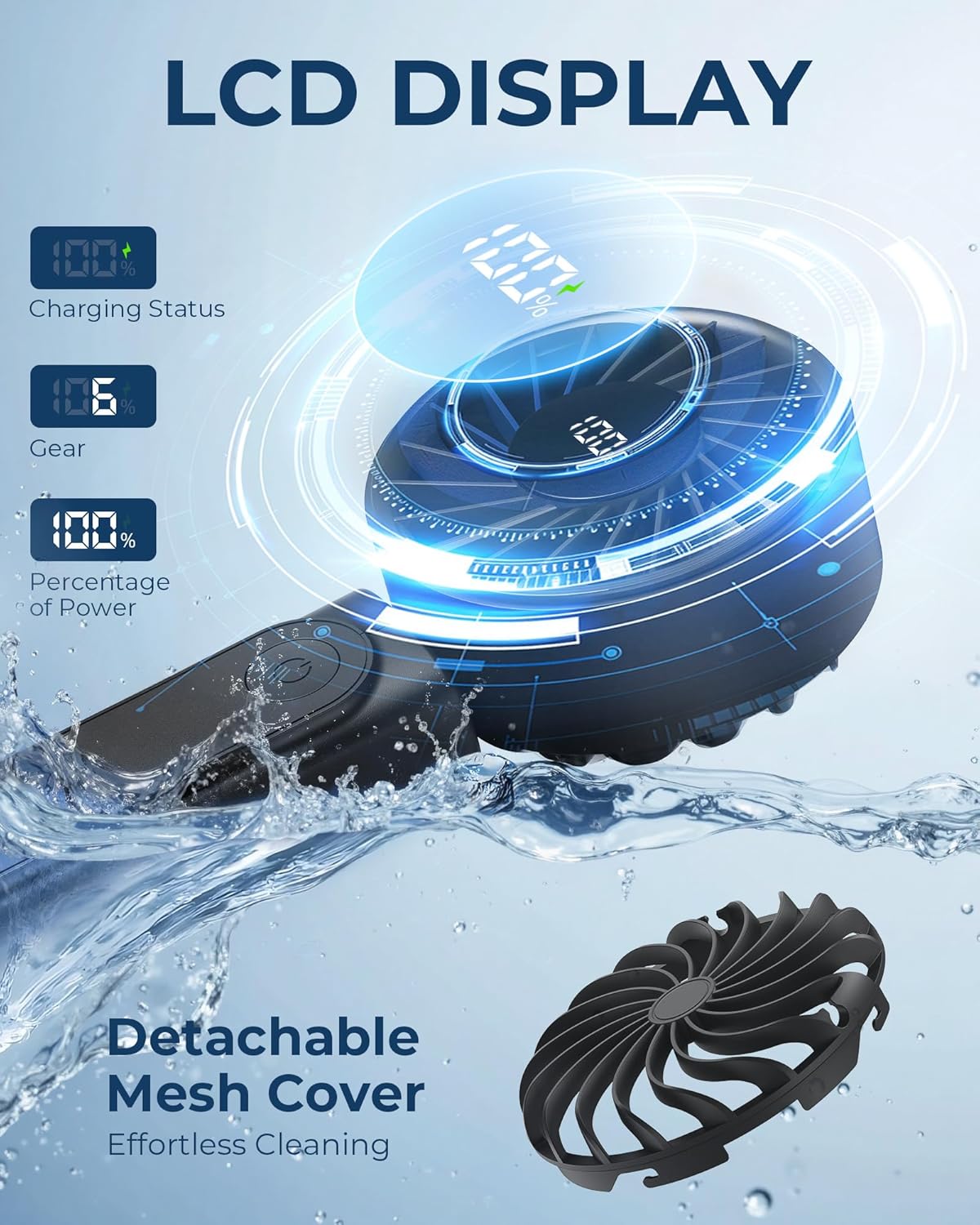 Our portable handheld fan with 4000mAh rechargeable battery, LED display, 6 adjustable speeds, 180° foldable design, and ultra-quiet brushless motor delivers fast, efficient personal cooling for home, office, travel, and outdoor use while offering versatile handheld, desk, and neck-fan functionality with simple one-button control and clear digital battery and speed monitoring.