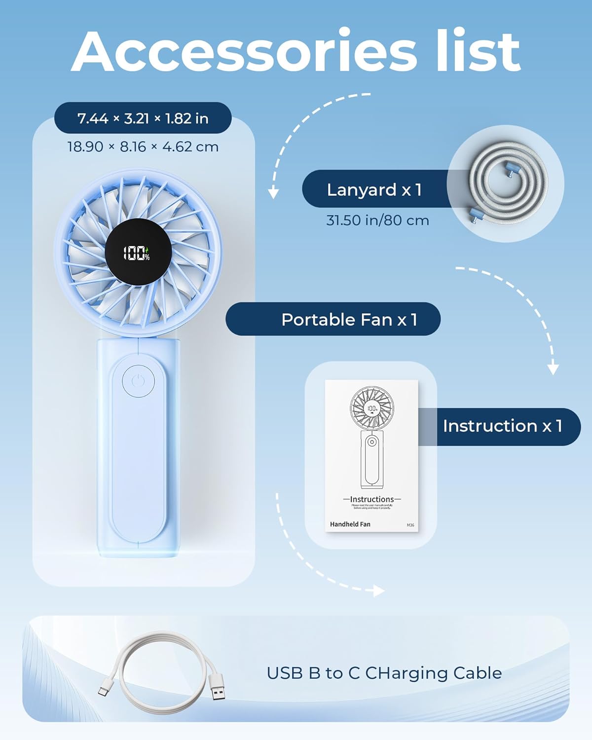 - 1 x Portable handheld fan