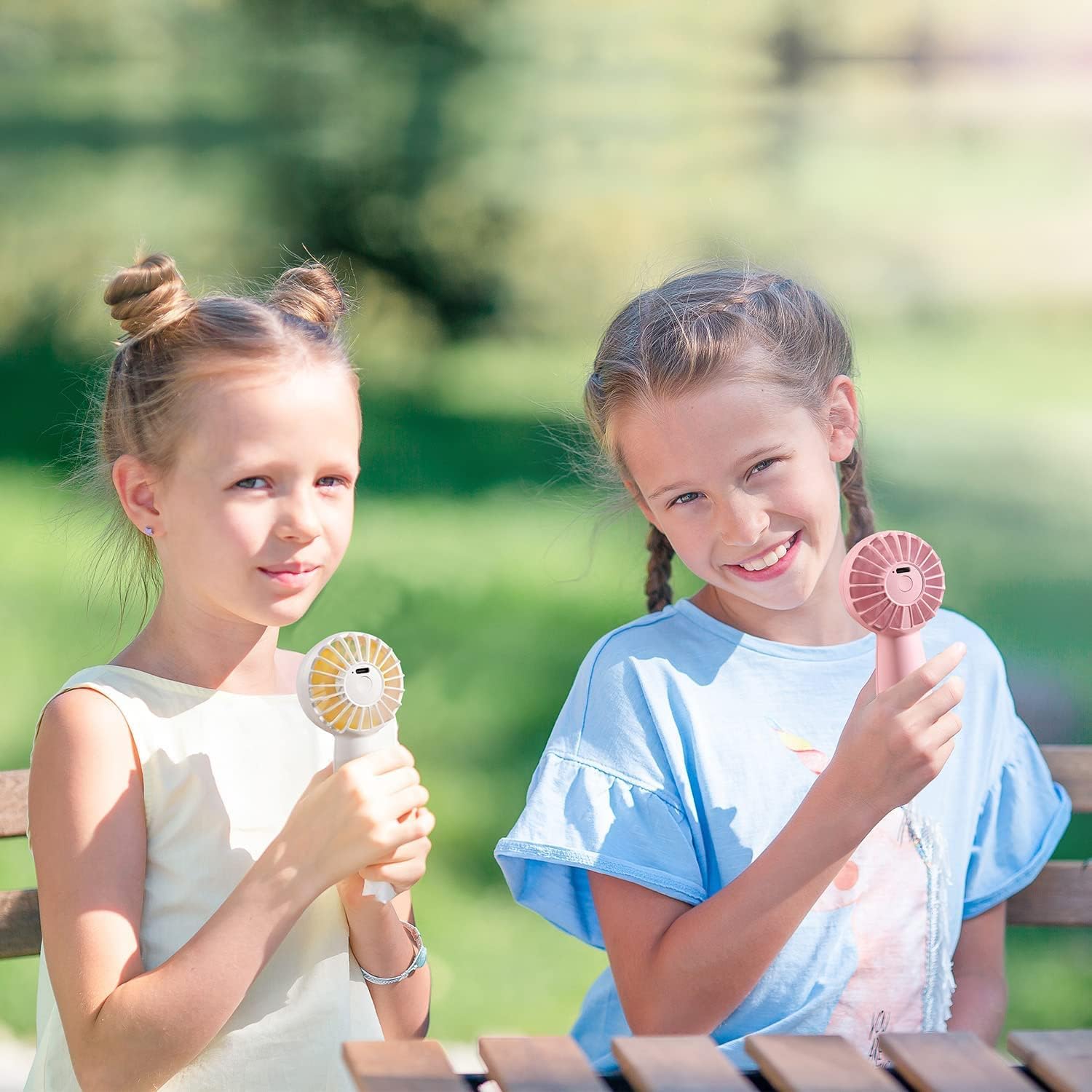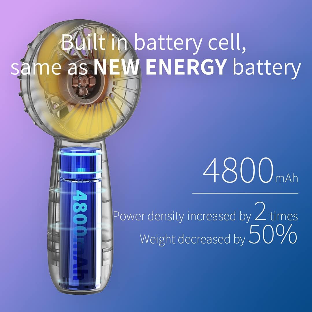 - Mini handheld fan with built-in rechargeable battery