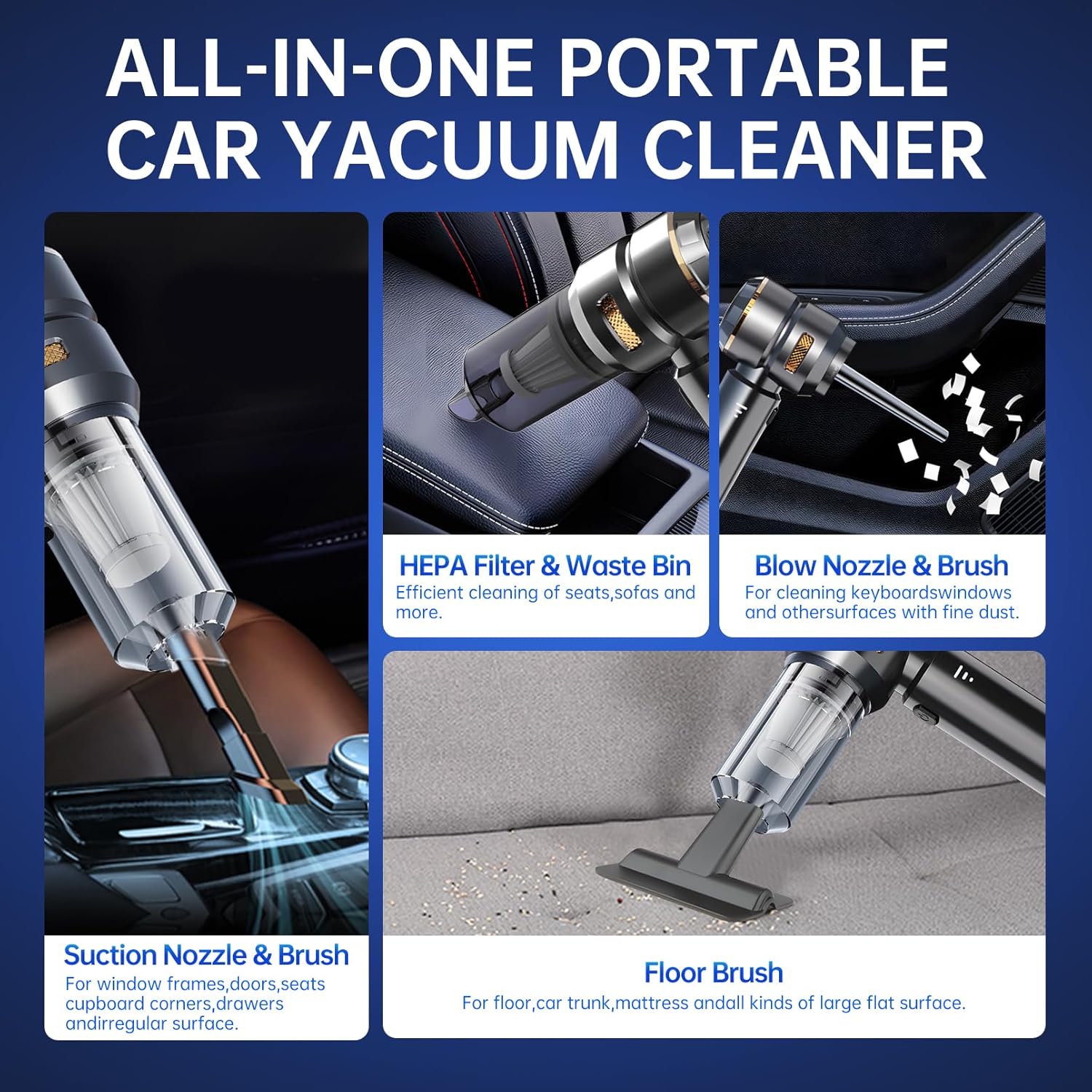 Experience powerful cleaning performance with the Handheld Mini Vacuum 4-in-1, a versatile cordless vacuum cleaner designed for home, office, car, and kitchen use. Featuring an impressive 23000PA cyclonic suction, this compact portable vacuum effortlessly captures dust, pet hair, crumbs, and debris in every corner. Its quiet operation under 70dB ensures cleaning without disturbance, while the washable high-density filter provides long-lasting efficiency. With USB Type-C rechargeable convenience and a lightweight, ergonomic design, this mini vacuum cleaner is perfect for quick clean-ups, hard-to-reach areas, and everyday maintenance. Upgrade your cleaning routine with this multifunctional, easy-to-use, and highly efficient cordless vacuum.