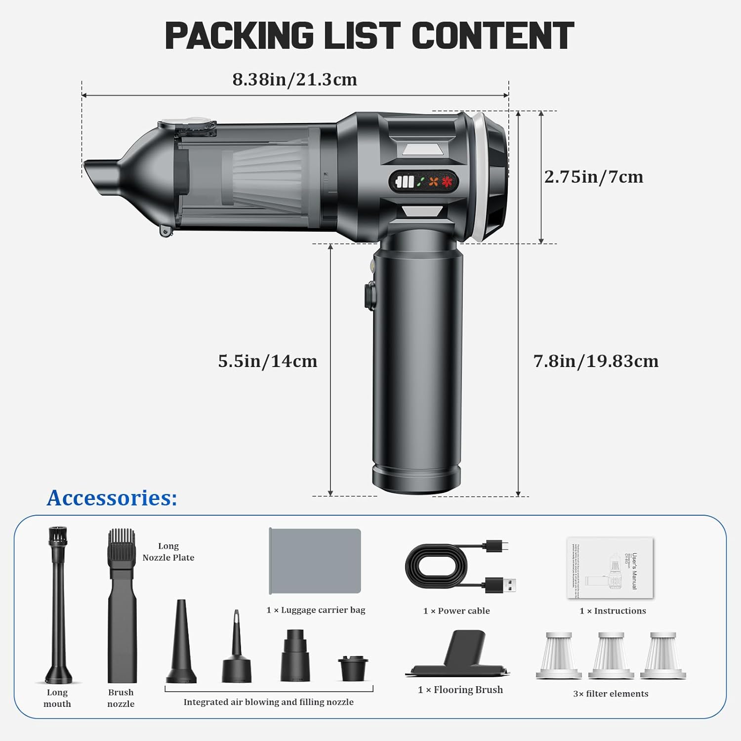 | Special Features | Car Vacuum Cleaner, LED Display, 4-in-1 Multifunction |