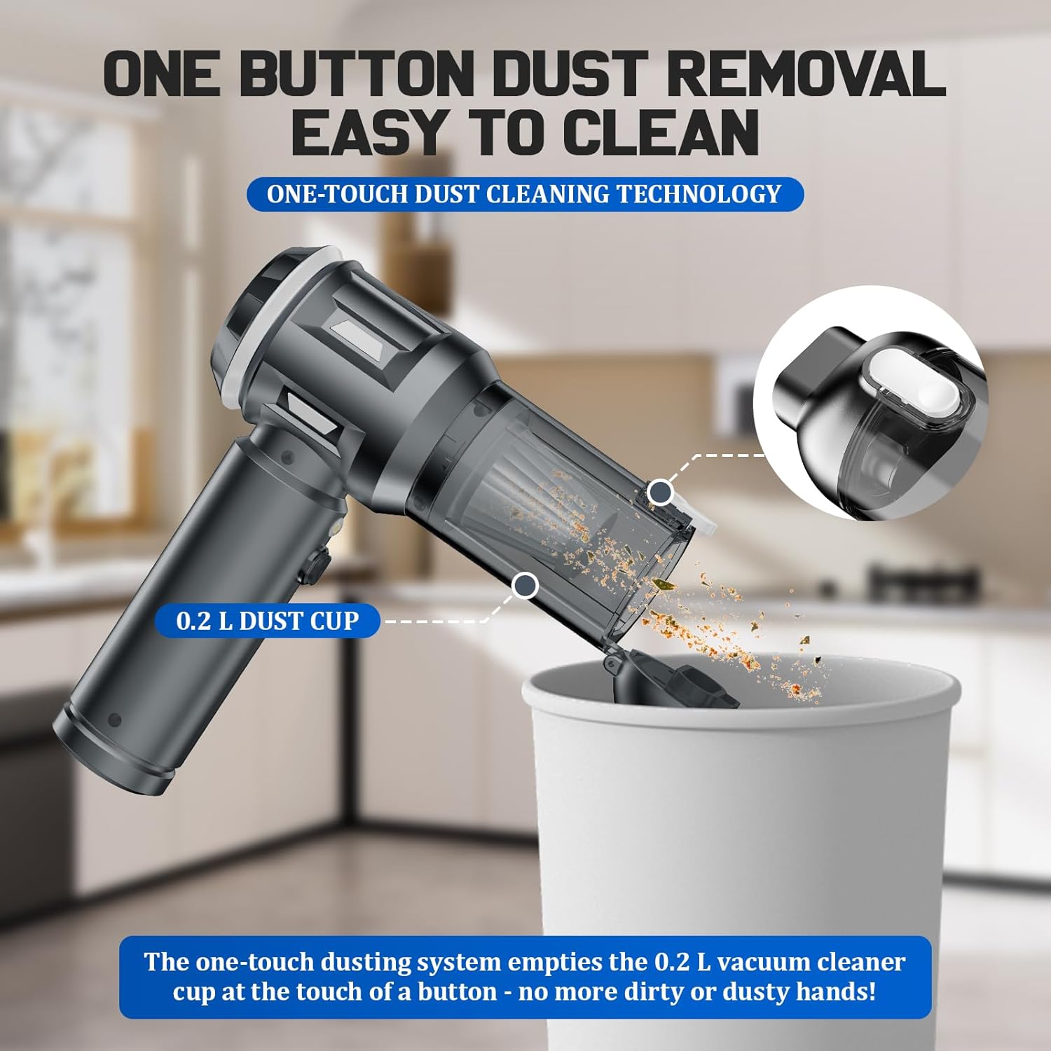 This mini vacuum has become my go-to cleaning gadget. It vacuums, blows, inflates, and even helps with outdoor activities. The transparent dustbin is convenient, and the HEPA filter ensures no dust escapes. Lightweight, portable, and powerful, it handles every mess effortlessly. A brilliant investment for home and car!