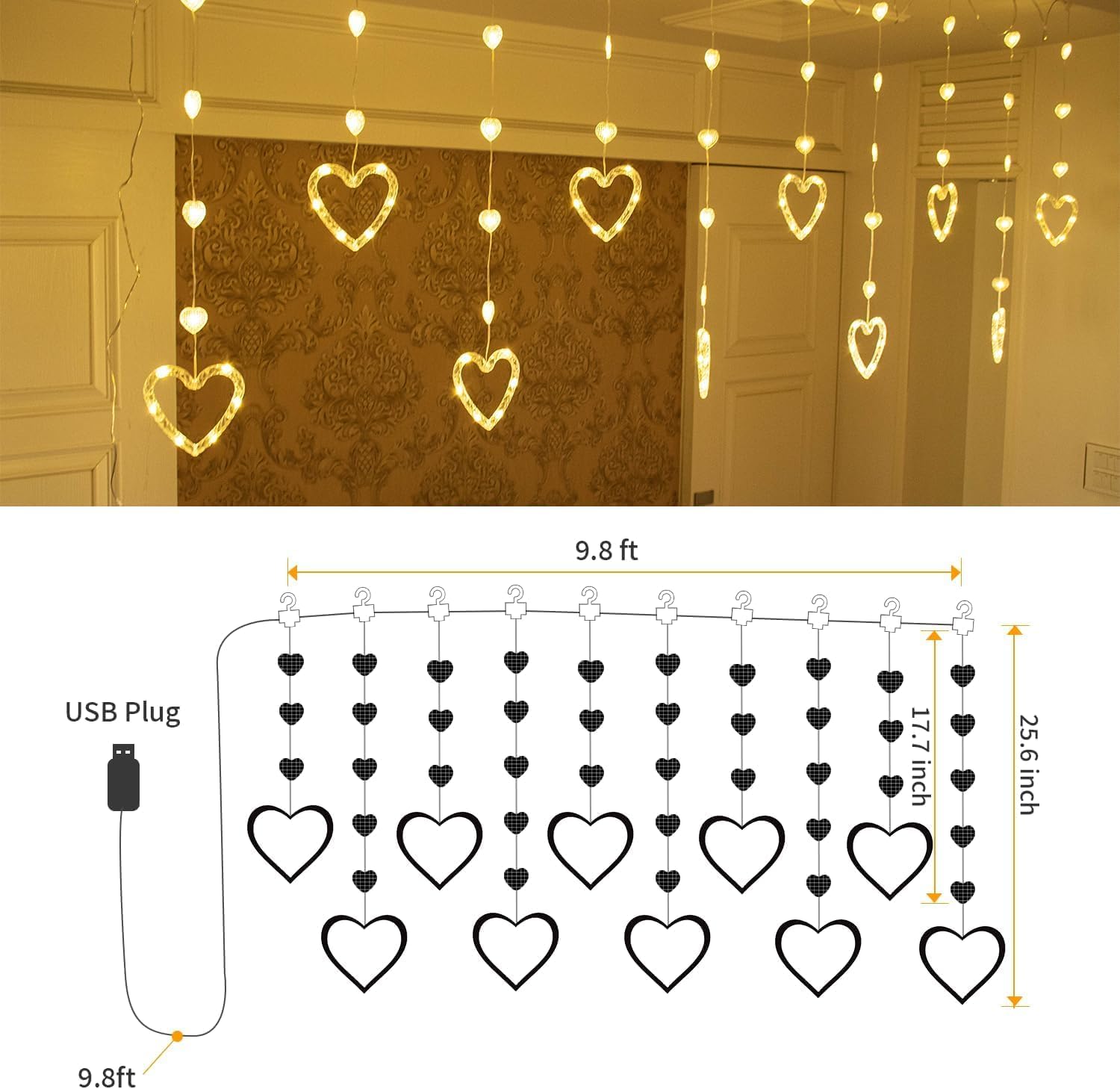 Designed with built-in hooks and flexible strings, the curtain lights are easy to hang on windows, curtains, walls, ceilings, or bed canopies. Instantly transform dorm rooms, bedrooms, or living spaces into a cozy, love-filled environment that makes every special moment unforgettable.