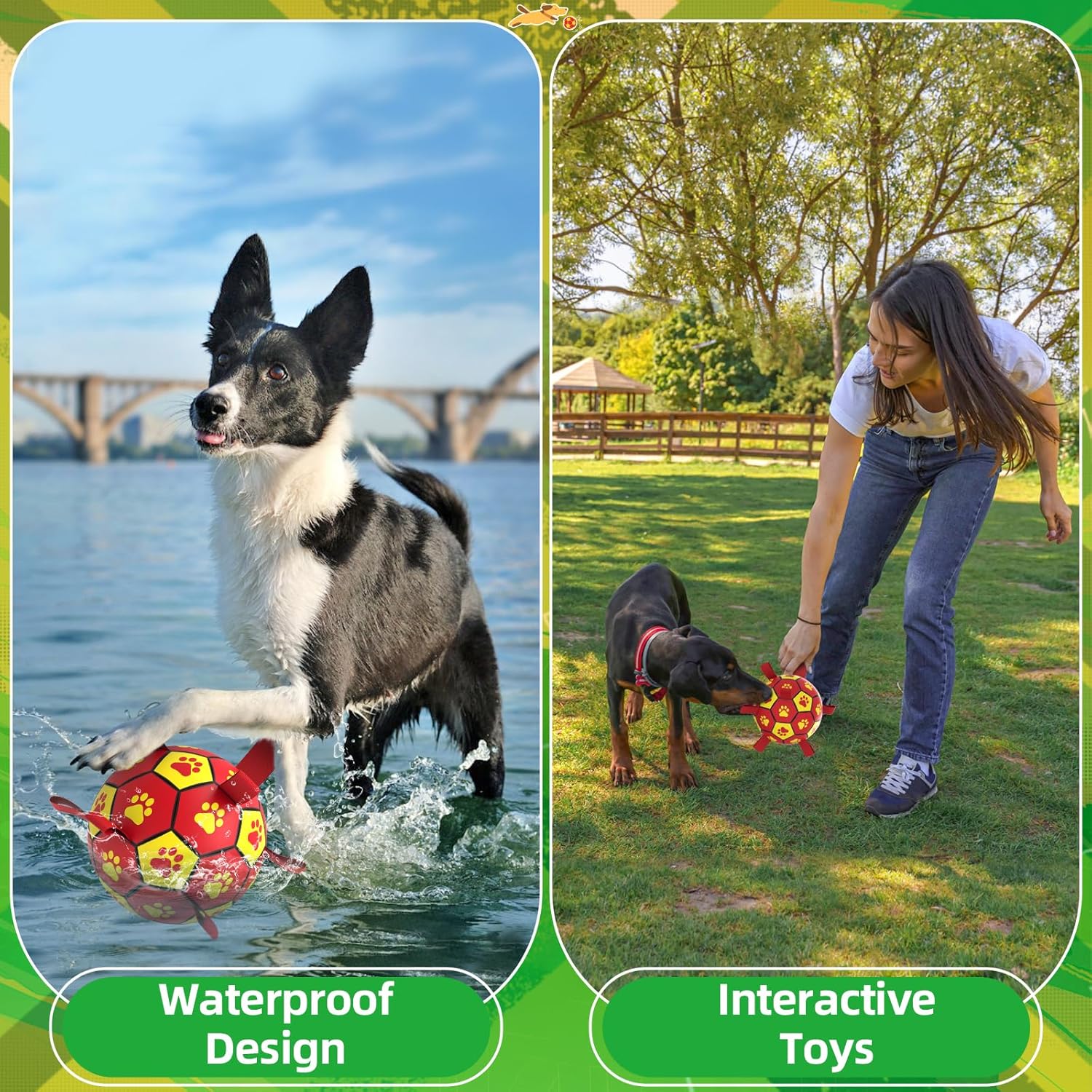 - Long strap for easy human interaction during fetch and tug games