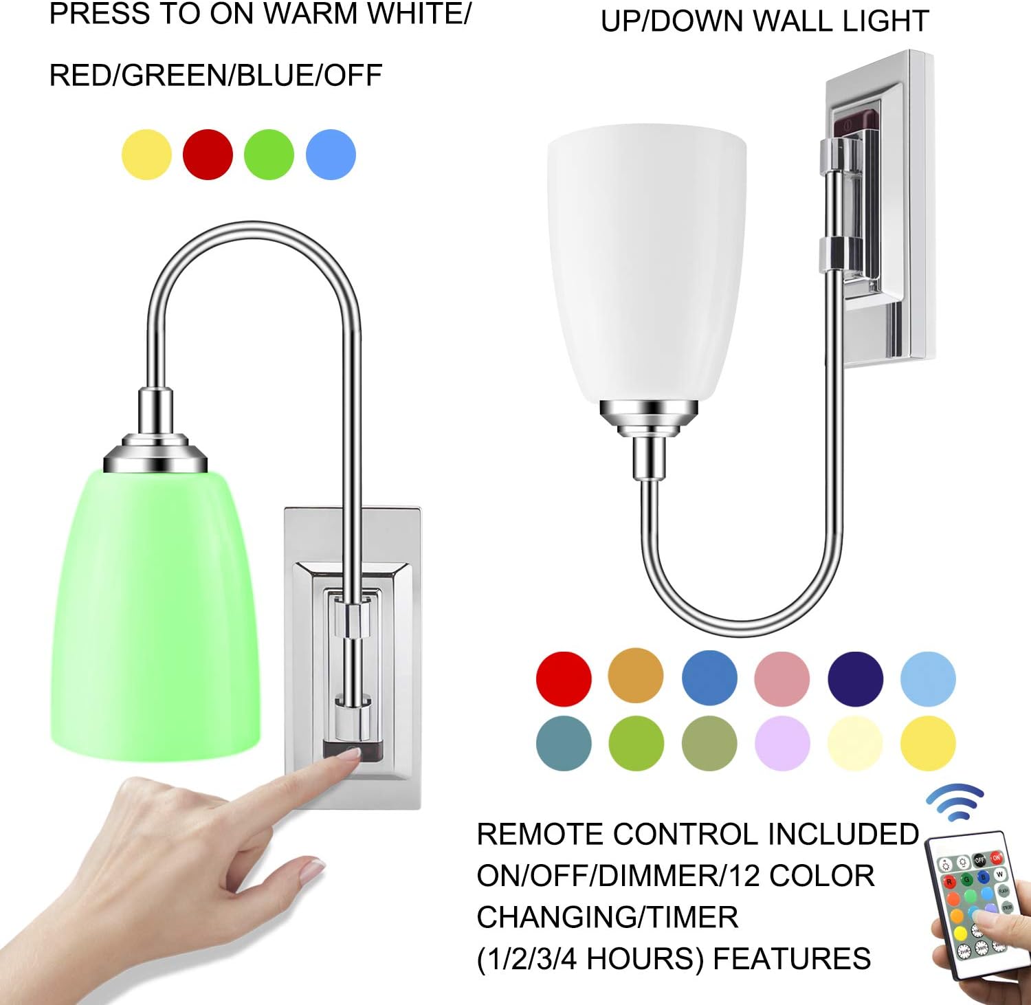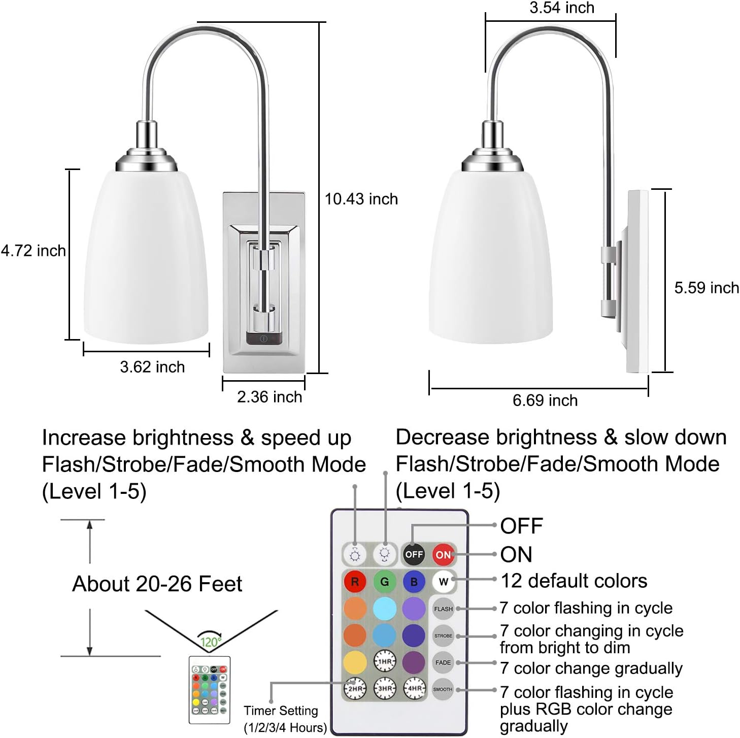 Our HONWELL Battery Operated LED Wall Lights provide versatile indoor illumination for bedrooms, living rooms, hallways, staircases, and more. Featuring 8 super bright SMD LEDs with 120 lumens of warm 3000K light, these wireless wall sconces run on 3 AA batteries (not included) for up to 50 hours. With 12 color-changing options, adjustable brightness, and a convenient remote control, you can customize lighting for any mood or occasion. The 180° adjustable swing arm and pivoting light head allow directional lighting, while simple installation with included screws makes it easy to mount facing up or down. Perfect for home, office, or decorative use in dark areas, these retro-style silver wall lights combine functionality and style.