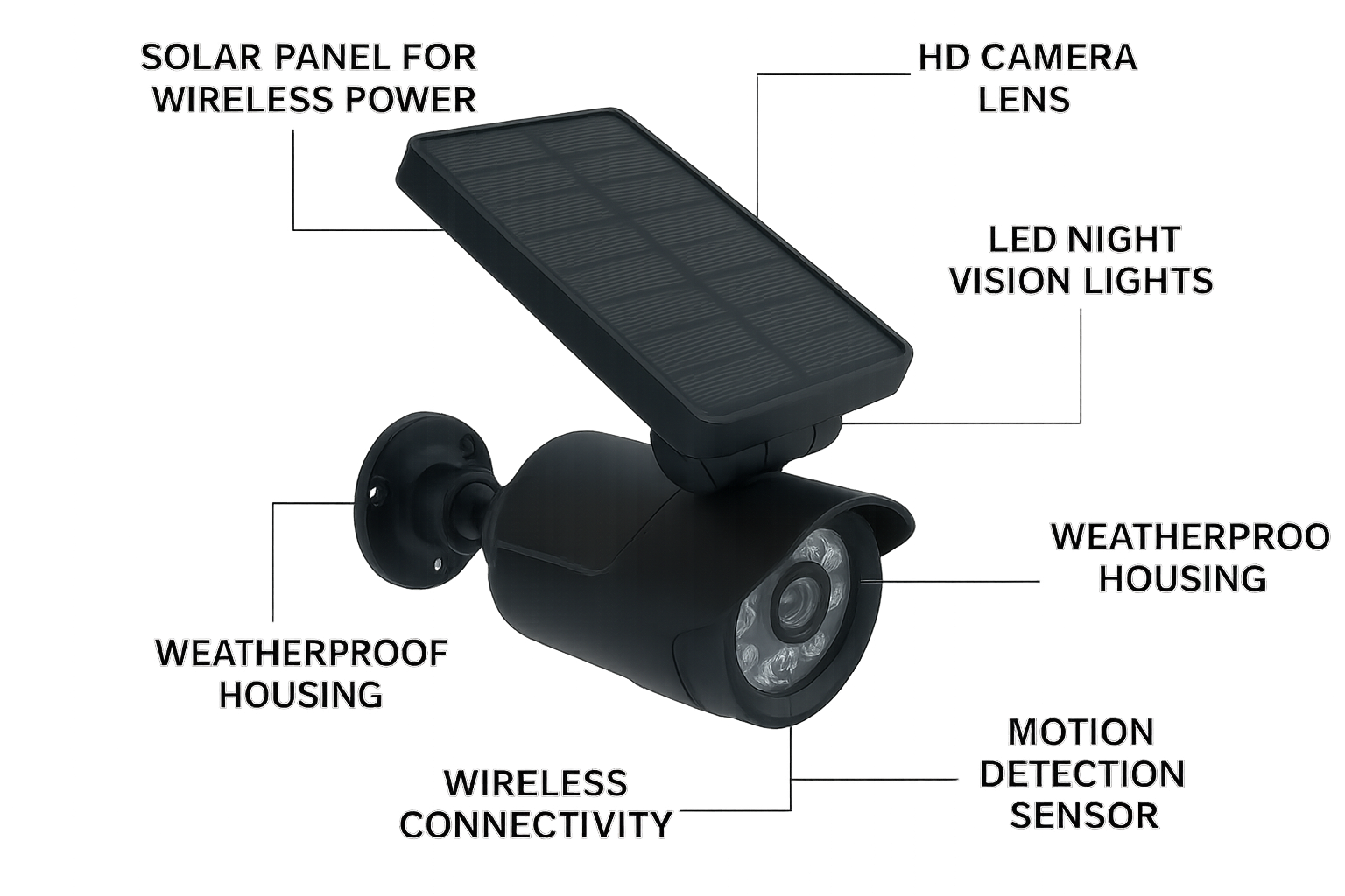 Realistic Camera Design: Mimics the appearance of a real CCTV camera to deter potential intruders.