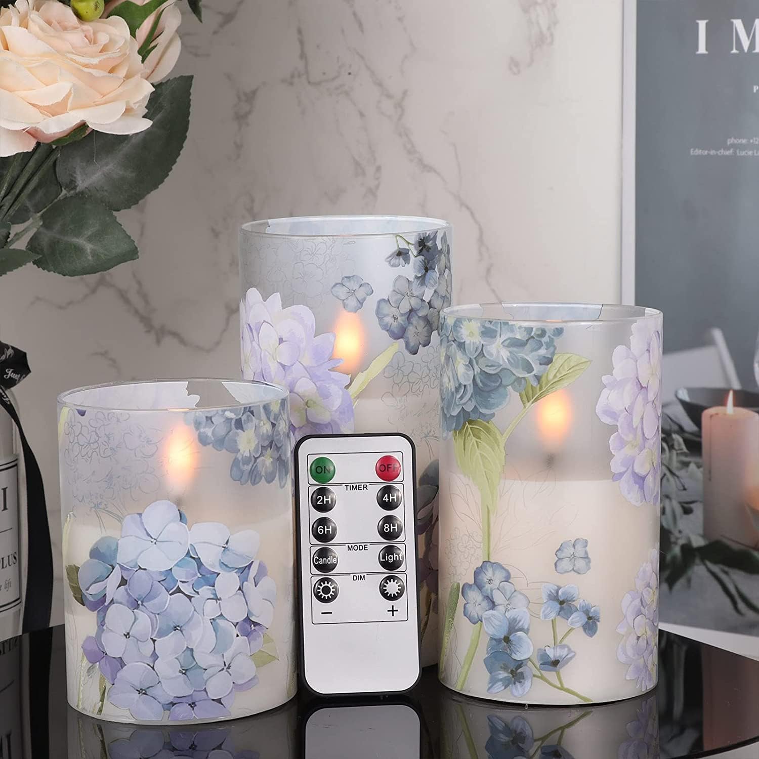 Create a warm and elegant atmosphere with these hydrangea-style frosted glass LED candles. Designed with a soft matte glass finish and delicate floral detailing, they beautifully mimic the look of real wax candles while offering the safety and convenience of flameless LED lighting.