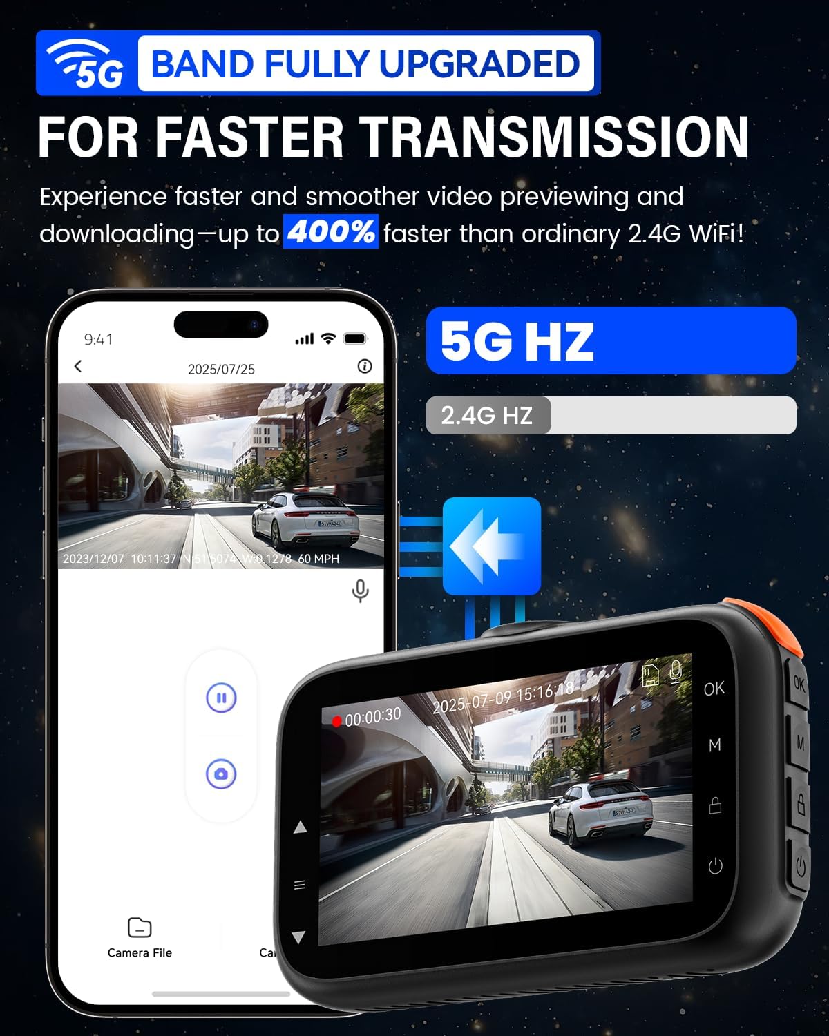 Equipped with 5G WiFi connectivity, the IIWEY Q5 allows fast video transfers via the dedicated app, eliminating long waits for downloads. The 3-inch IPS screen provides a vivid display for playback and easy navigation, while the 170° wide-angle view covers every corner of your path.