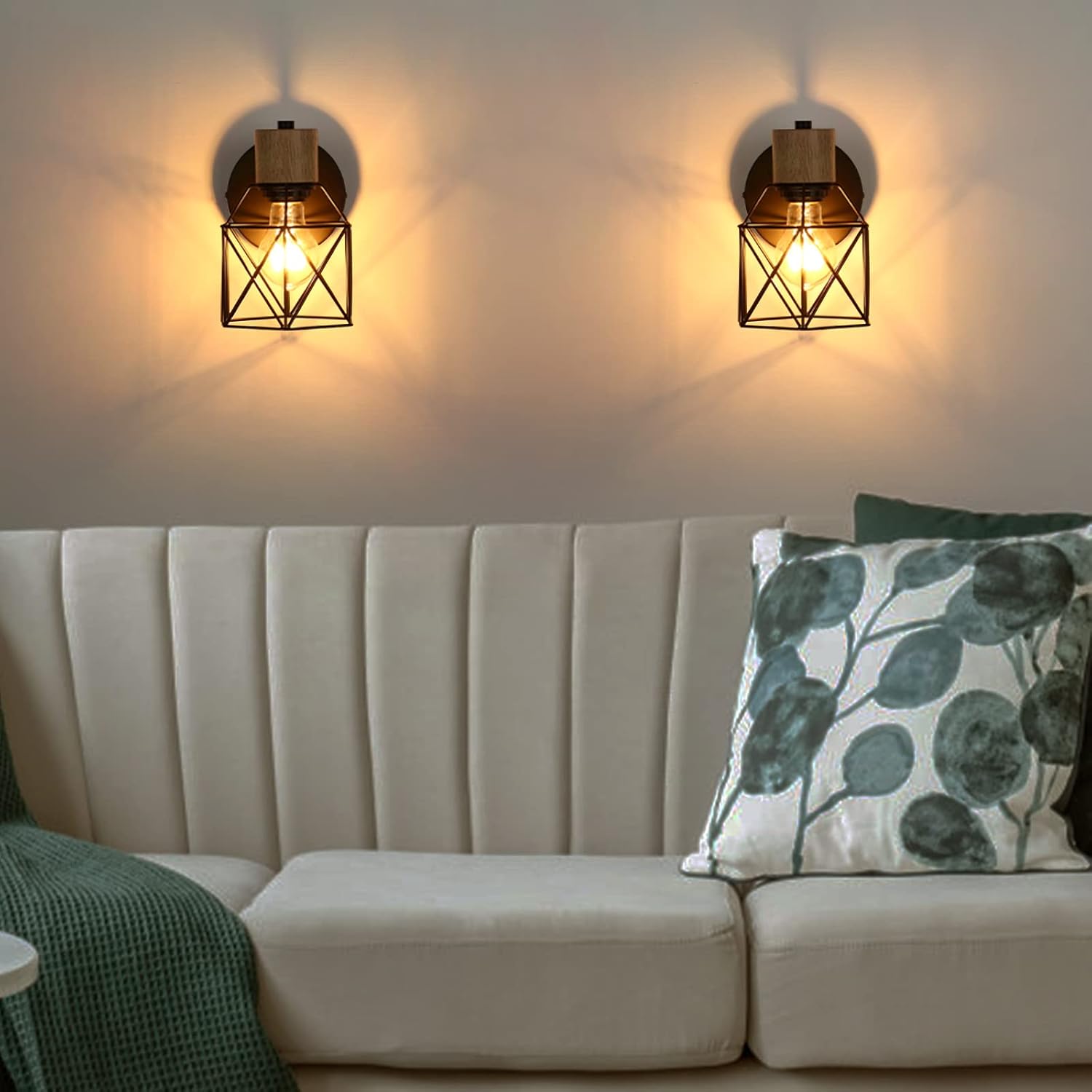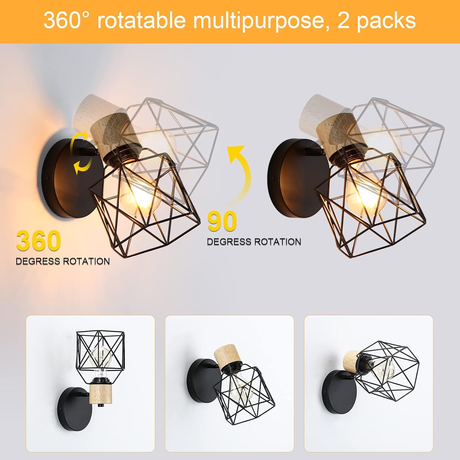 Our Industrial Wooden Wall Light 2PCS combines vintage design with practical functionality, perfect for indoor spaces such as living rooms, bedrooms, kitchens, and lofts. Featuring a sturdy iron frame with solid wood accents, this retro wall lamp provides a soft, warm ambiance while maintaining a high-quality, corrosion-resistant finish. The adjustable E27 socket allows for use with LED, CFL, or incandescent bulbs up to 40W (bulbs not included), and the 360° rotatable head ensures customizable lighting angles for any setting. Its natural wood grain and metal cage design add an elegant industrial touch to your décor.
