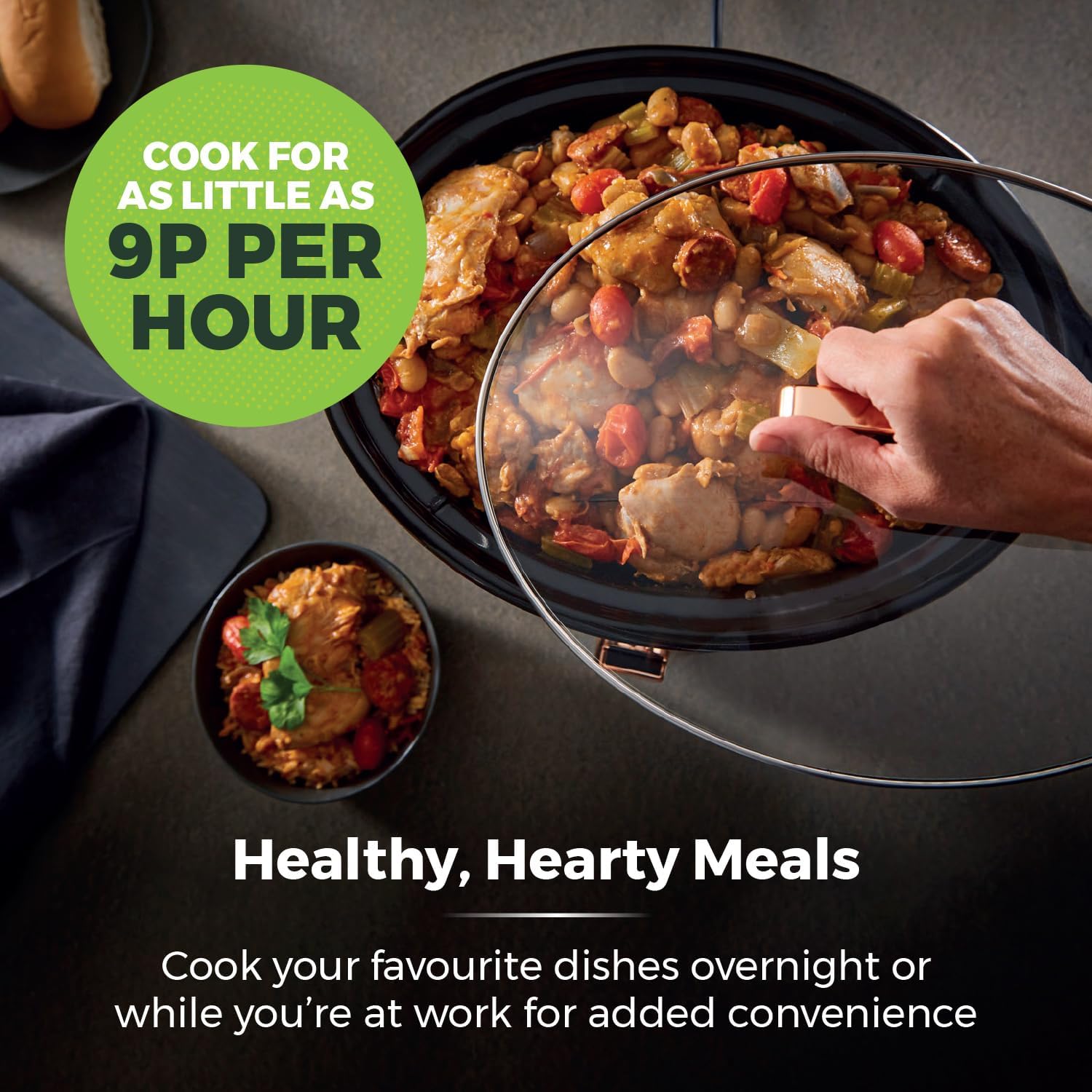 Engineered for energy efficiency, this cooker costs as little as 9p per hour to run, making it an economical choice for daily use. The tempered glass lid with a cool-touch handle offers safety and easy monitoring of your meal’s progress. Non-slip feet provide stability, ensuring peace of mind during long cooking sessions.