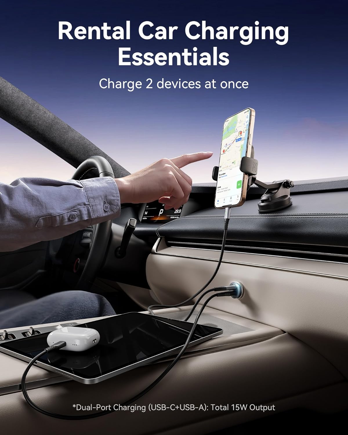 Dual-port design: USB-C 30W + USB-A 30W for simultaneous charging