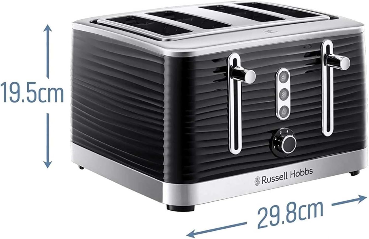 The Inspire 4 Slice Toaster in Black Textured High Gloss is a perfect blend of premium design, power, and precision, offering a truly inspiring breakfast experience. Crafted from high-quality plastic and steel with a unique textured finish and chrome accents, it adds sophistication to any modern kitchen.