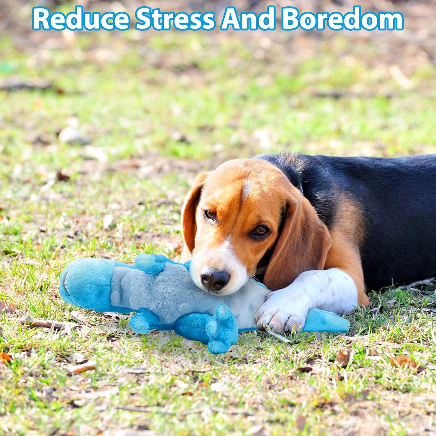 - 1 x IOKHEIRA Dinosaur Squeaky Plush Dog Toy (Blue, Tyrannosaurus)