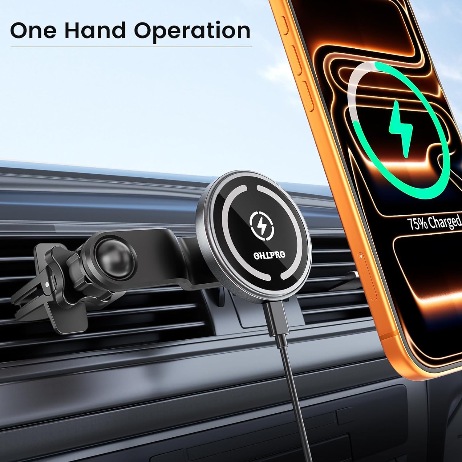 Upgrade your driving experience with the iPhone 16 MagSafe Car Mount Charger, designed for maximum convenience, safety, and efficiency. This magnetic wireless car charger is compatible with iPhone 16, 15, 14, 13, and 12 series, ensuring your device remains secure through every bump and turn. The strong magnets guarantee a reliable hold, while the 15W fast charging technology keeps your iPhone powered up without interrupting your journey.