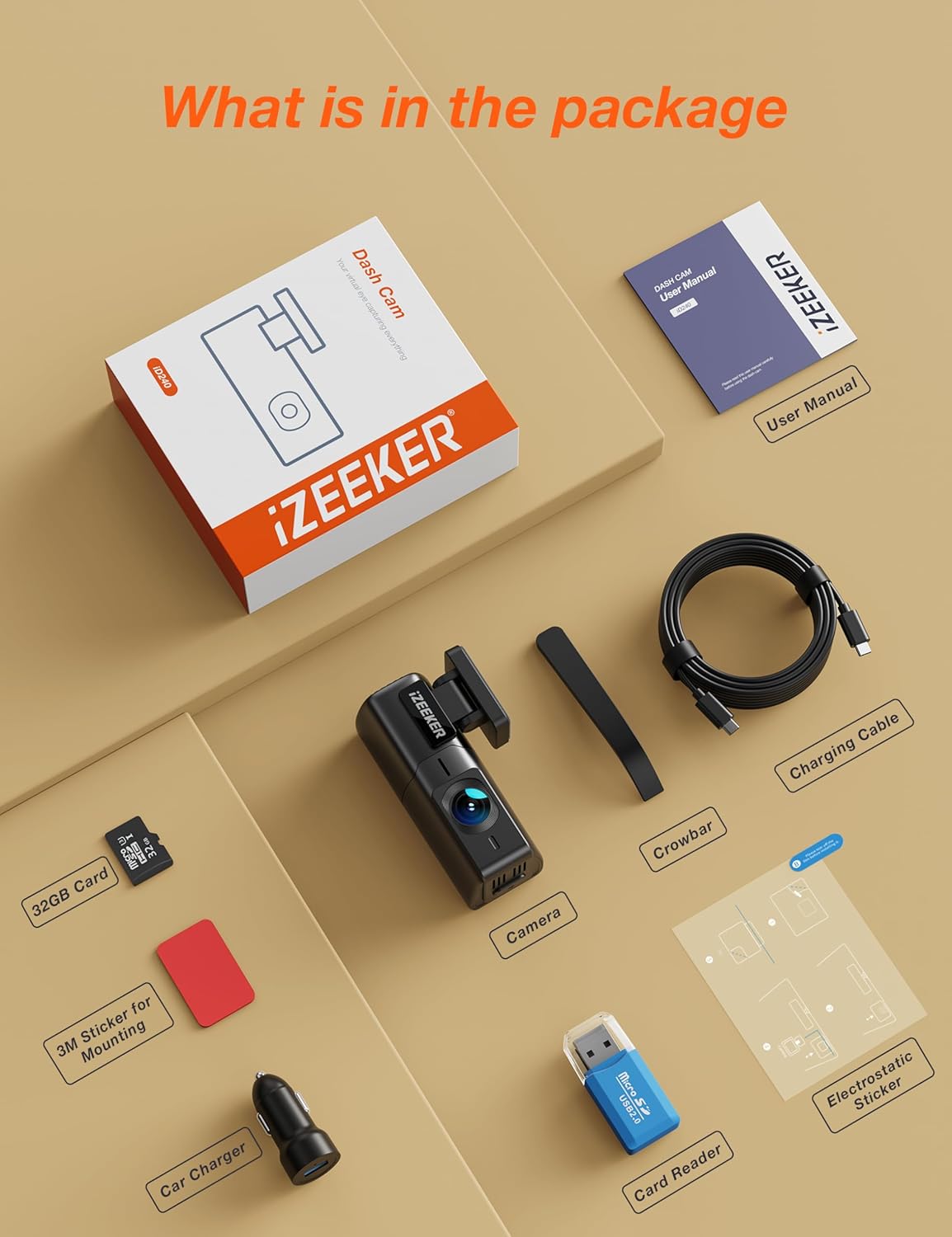Our iZEEKER 1440P Dash Cam delivers exceptional clarity and reliable performance with its 2.5K QHD resolution, providing sharper image details than standard 1080P cameras. Designed with built-in WiFi and app control, it allows seamless viewing and video transfer through the Viidure app. This compact dash camera includes WDR technology for balanced exposure in low-light or night conditions. With G-sensor emergency recording, loop recording, and 24-hour parking monitoring support, it ensures full protection for your vehicle on and off the road. Easy to install and equipped with a 32GB SD card, this mini dashcam offers convenience, safety, and dependable recording quality for every drive.