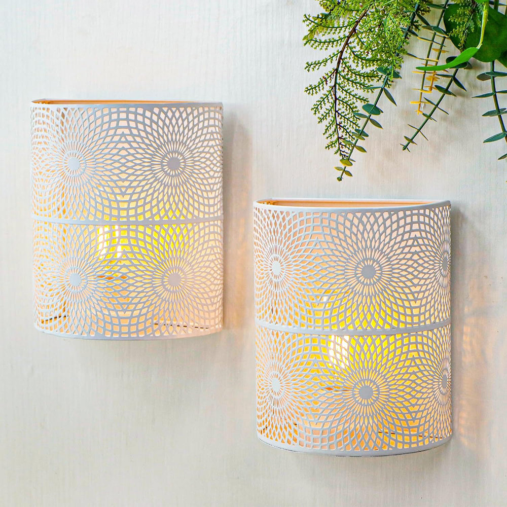 - Set of 2 wall sconce/table lamps with sunflower-shaped hollow design