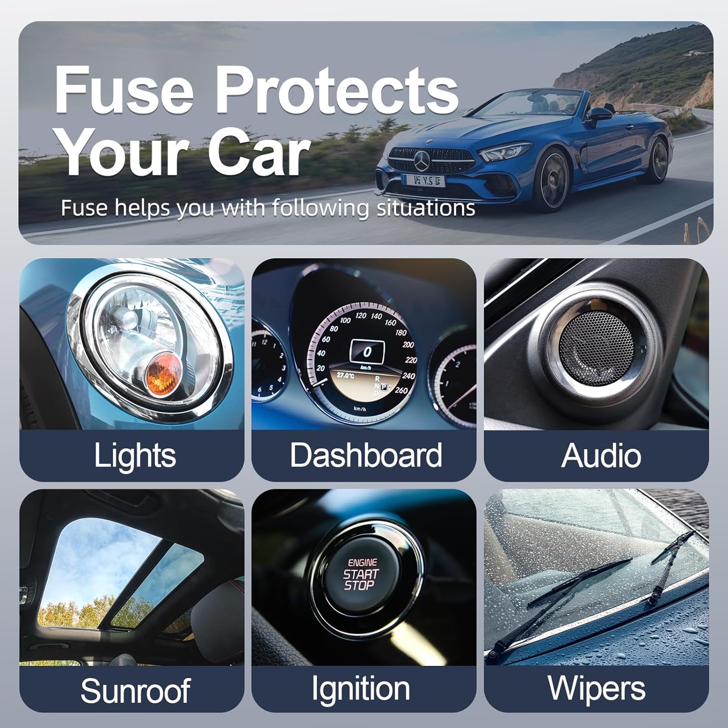 Our JOREST 300Pcs Car Fuses Assorted Kit is a comprehensive automotive fuse replacement set designed to cover all your car, truck, RV, and motorcycle electrical protection needs. Featuring 11 current ratings (2A to 40A) across micro, mini, and standard blade sizes, this kit ensures you're prepared for any emergency. Each fuse is color-coded and clearly marked for quick identification, saving you valuable time during replacements. Crafted from high-quality zinc alloy and durable plastic, these fuses provide reliable conductivity, excellent corrosion resistance, and long-term stability — making them ideal for both professional mechanics and DIY car owners. Keep your vehicle’s electrical systems safe and efficient with this all-in-one fuse assortment kit.