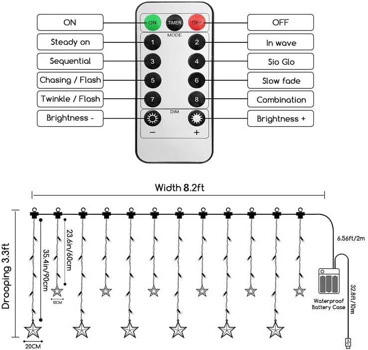 Our Christmas LED Star Curtain Lights create a stunning festive ambiance with their 12-star design and 138 warm white LEDs, perfect for weddings, parties, and home decorations. These elegant curtain string lights combine practicality with beauty — offering both USB and battery power options to ensure flexibility indoors and outdoors. With 8 lighting modes, including wave, slo-glo, and steady on, you can create the perfect glow for any occasion. Crafted with durable waterproof materials (IP65), they’re built to withstand winter weather while adding a soft, magical shine to windows, walls, or trees. Ideal for creating a warm, welcoming, and romantic holiday atmosphere.