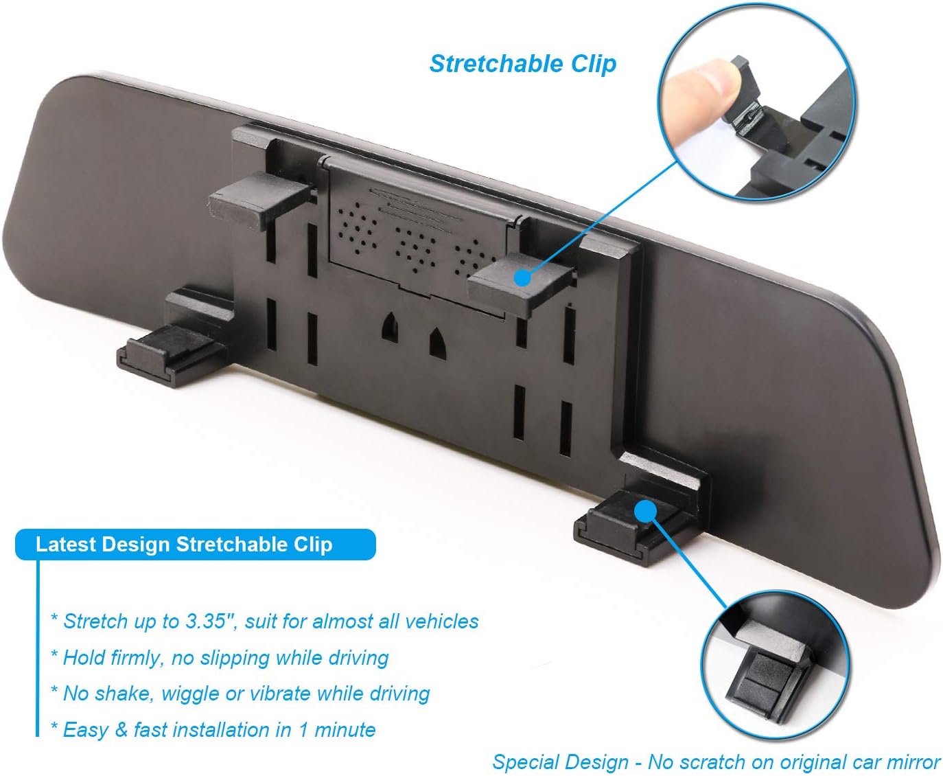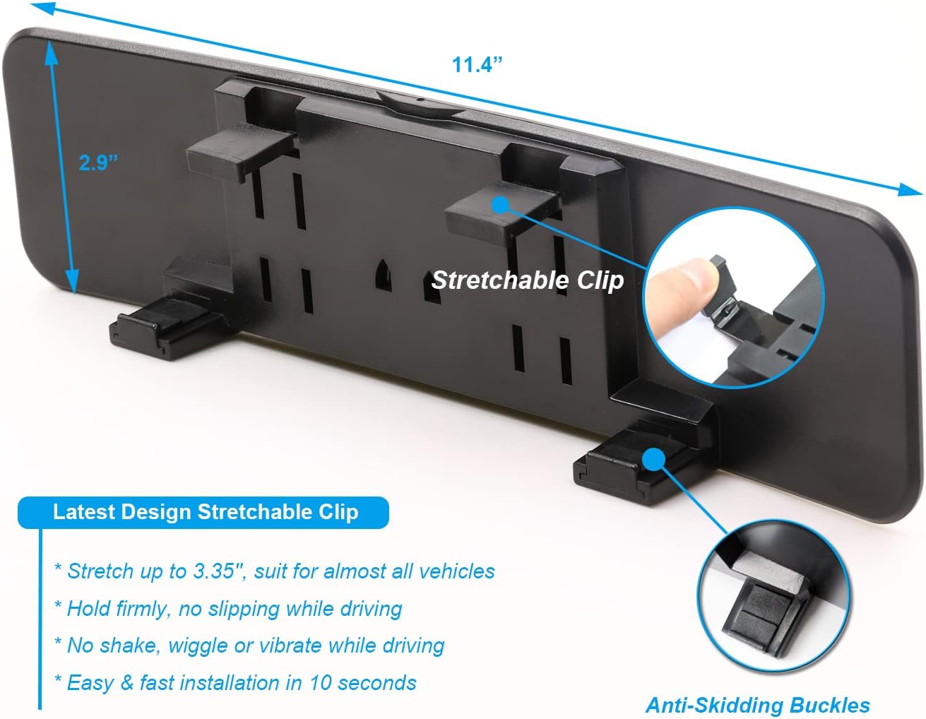 Our KITBEST 11.8-inch anti glare rear view mirror provides a wider, clearer view to eliminate blind spots and enhance driving safety. Made from high-definition, toughened glass fiber composites, this panoramic convex mirror reduces glare from sunlight and headlights, ensures distortion-free reflection, and includes an anti-splash design to prevent glass fragments from causing injury. Its universal clip-on design fits most cars, SUVs, and trucks, allowing easy installation and removal without tools, giving drivers a safer and more comfortable experience on the road.