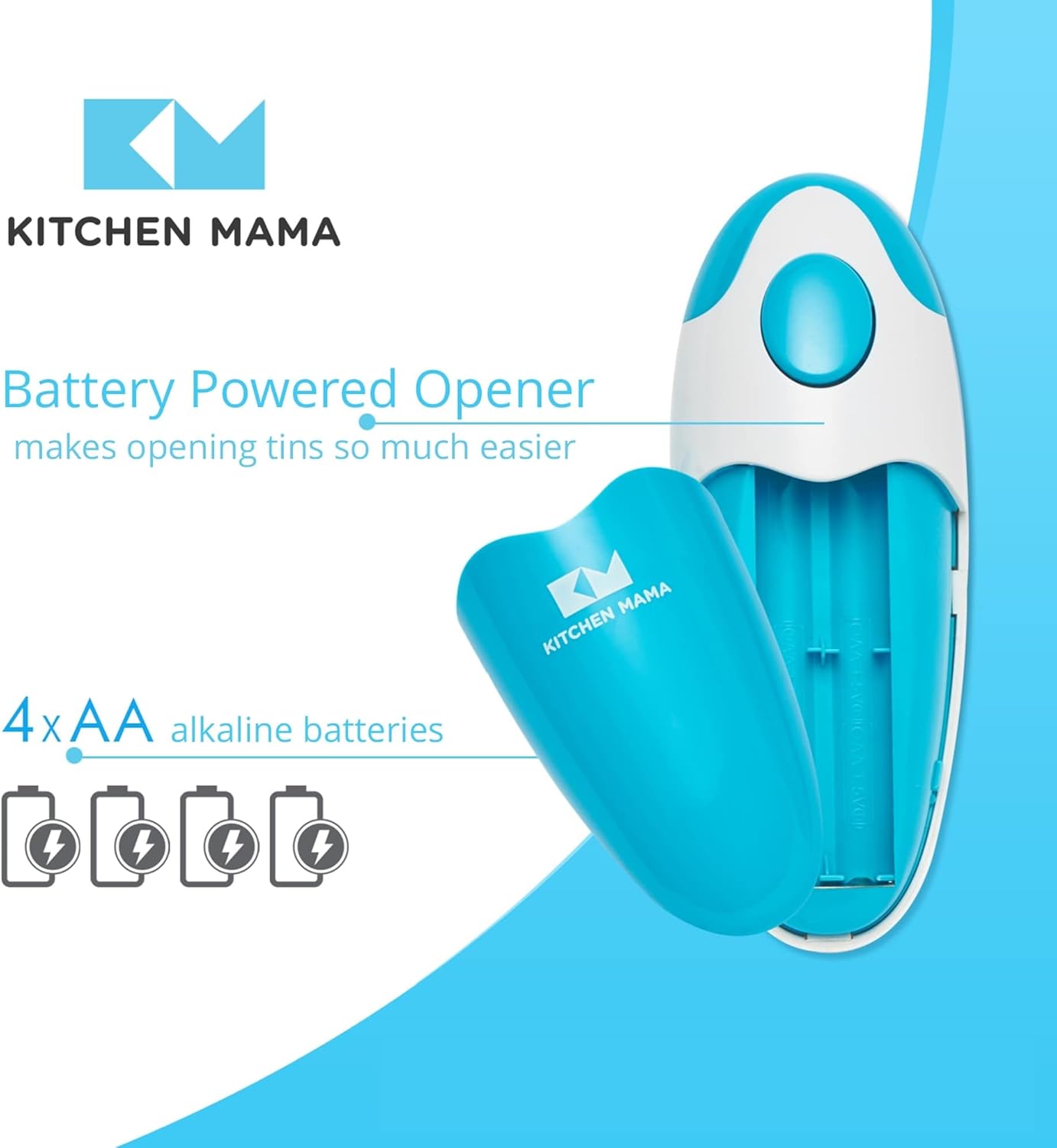 Our Kitchen Mama Electric Can Opener is a smart, hands-free can opening solution designed for effortless everyday use. With just a simple press of a button, this compact tool automatically cuts around the side of cans, leaving smooth, safe edges. Its food-safe design and battery operation make it a practical addition to any modern kitchen.